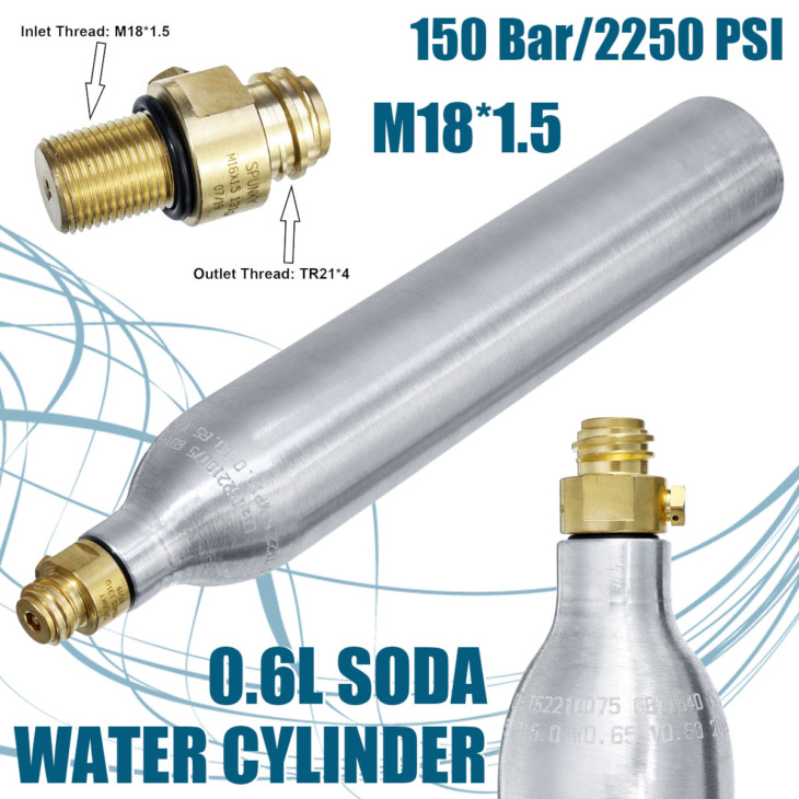 0,6 Liter Szóda Vízhenger 150 Bar/2250Psi Nagynyomású Alumínium Palack Rycyled Gázhenger Tartály Újratöltő Szóda Adapter Szeleppel