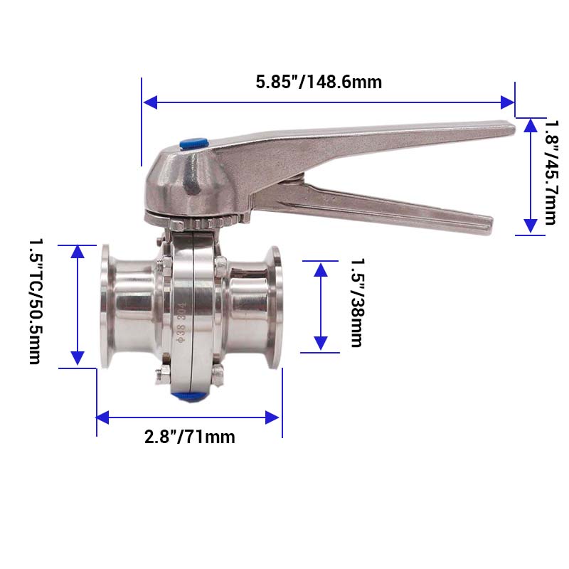 1.5 „Tri-Clamp Bufferfly Szelep Rozsdamentes Acélpréselőhellyel Fogantyú Alacsony Feszültség 304 Rozsdamentes Acél Homebrew Sör Hardver