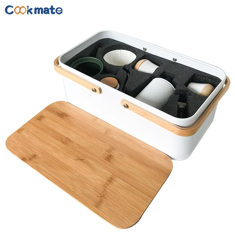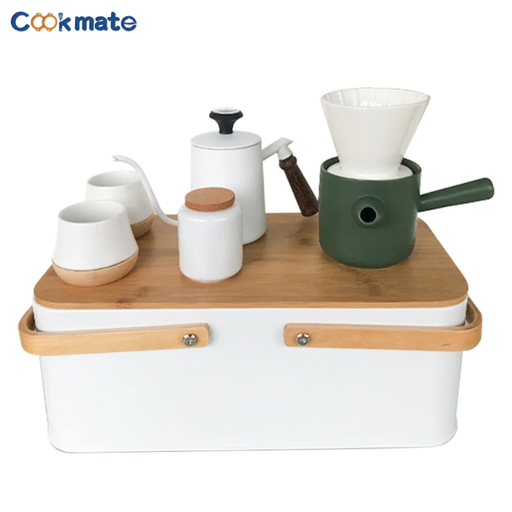 1 Beállítja A Kávé Teakészlet Ajándékdobozát, Öntsön Ki Kávékészletet Kávéfőzővel, Mindegyik Fém Dobozban Kültéri Utazáshoz
