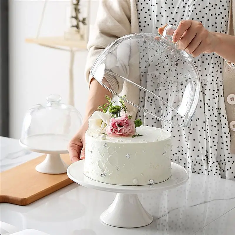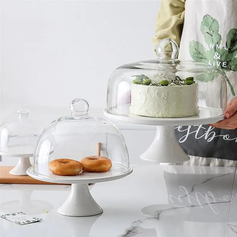 1 Beállítva Magas Bázisú Torta Tálca Desszert Tányér Állványos Üveg Fedél Készlet Északi Egyszerű Desszertlemez Borítókészlet A Parti Áruházakhoz