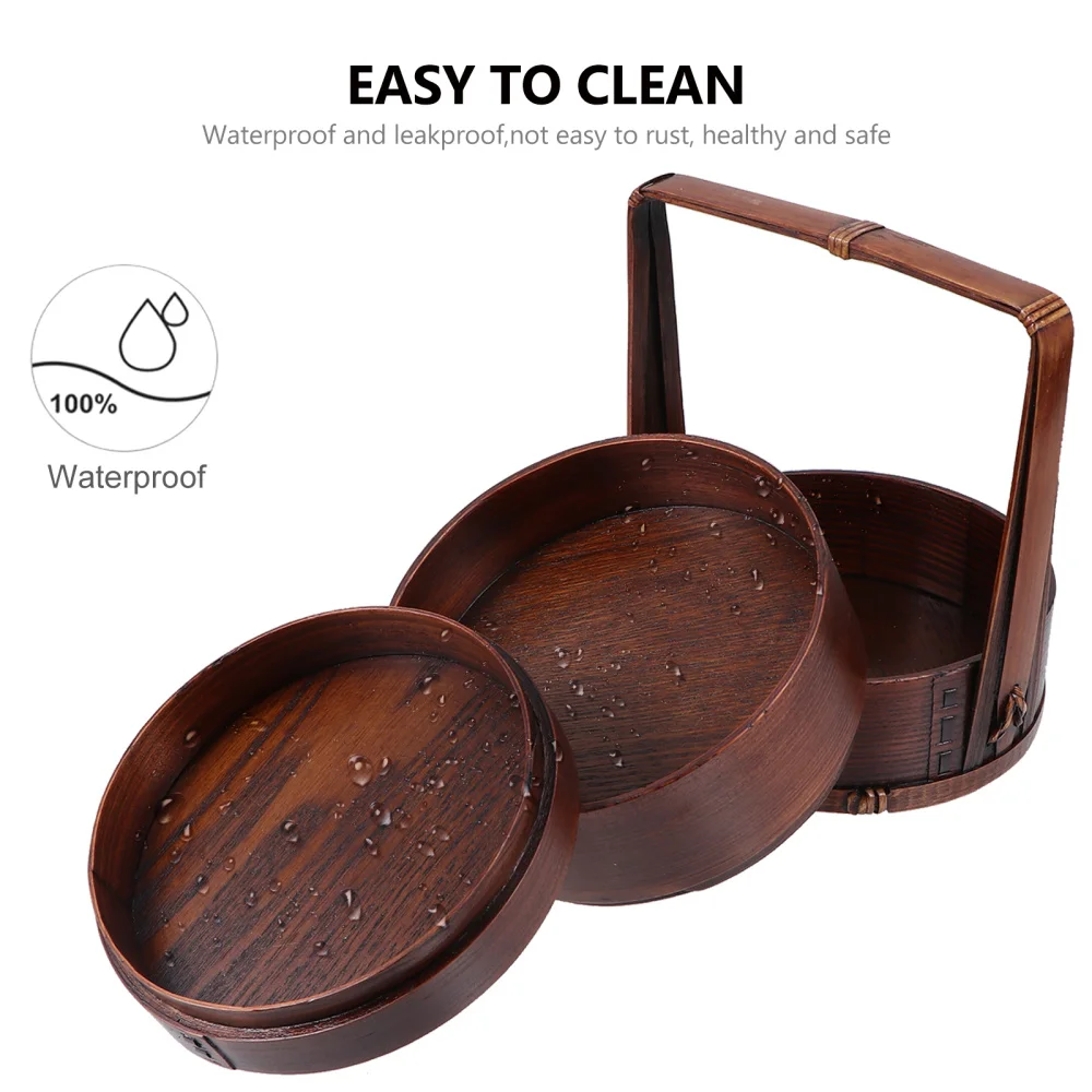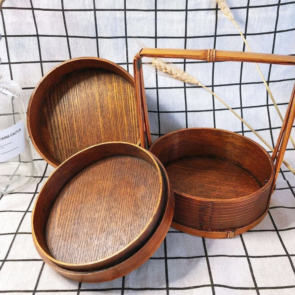 1 Db Fa Ebéd Sushi Doboz Dupla Rétegű Bento Hordozható Étel Konténer Asztali Edények Hallgató Ebéddoboz Rekeszekkel