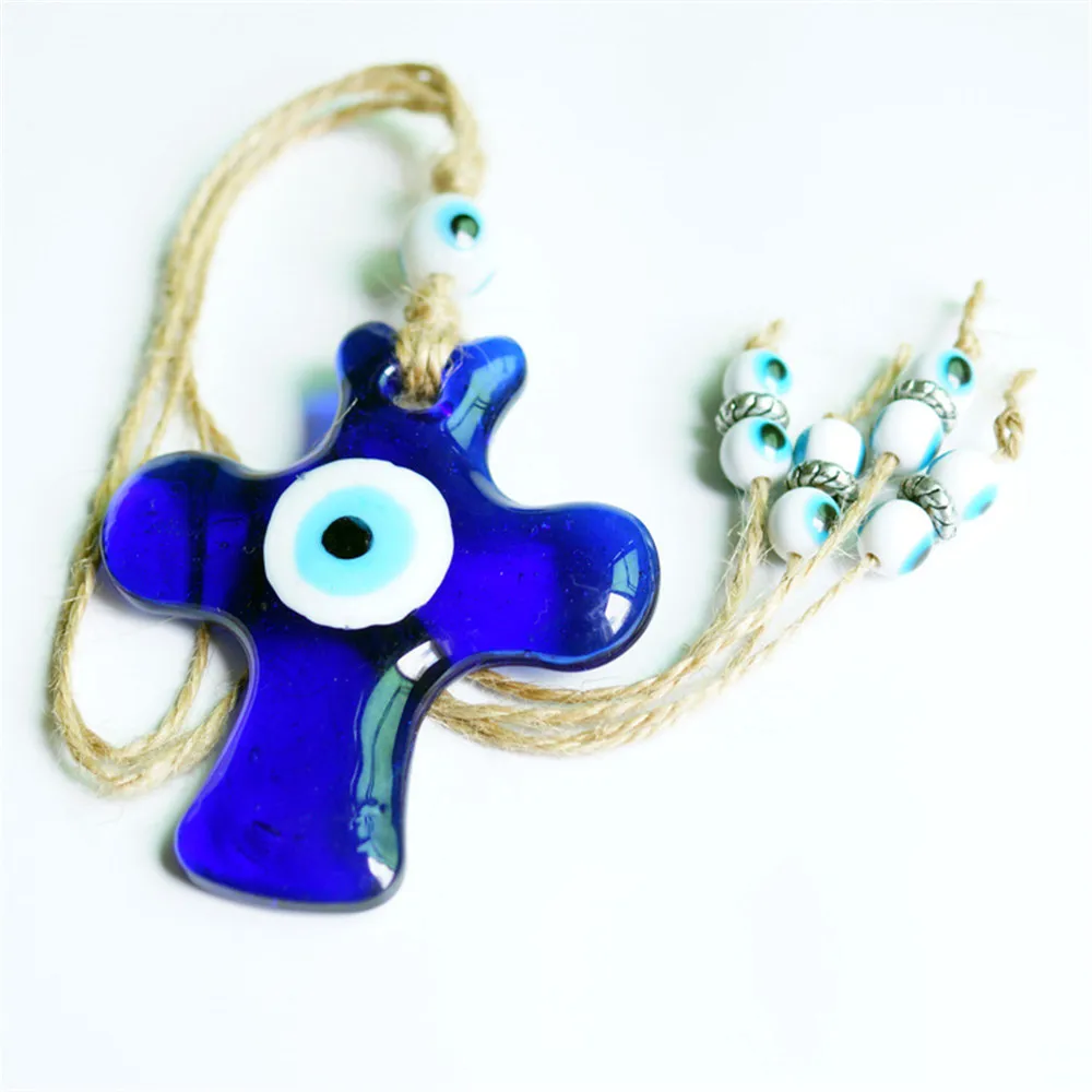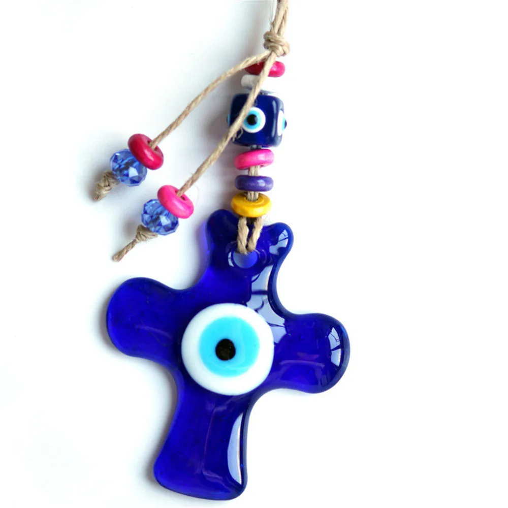1 Db Görögország Pulyka Kék Szem Ékszer Kereszt Üveg Medál Gonosz Szemek Kézzel Készített Kender Kötél Színes Gyöngyök Fal Lógó Otthoni Dekorációk