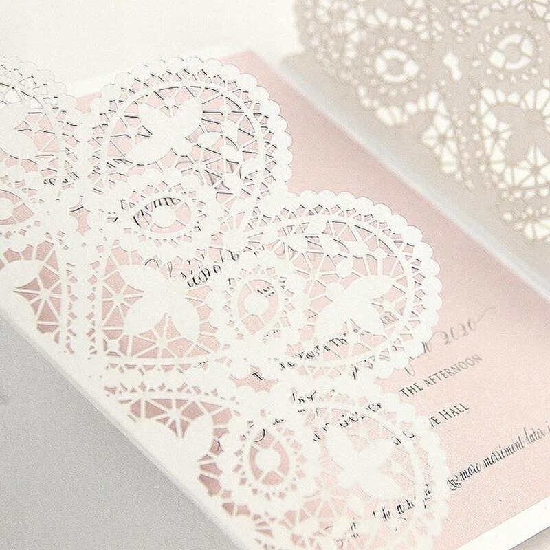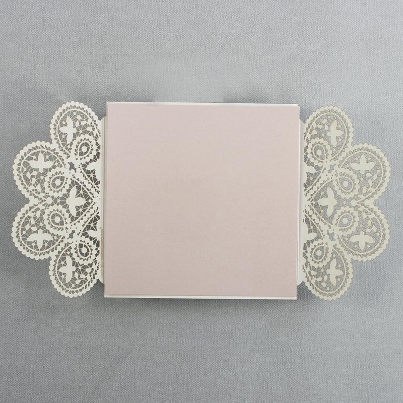 (10 Darab / Tétel) Fehér Csipke Rózsaarany Bowknot Esküvői Meghívó Lézer Virágos Rózsaszín Eljegyzés Quinceanera Meghívók Ic134