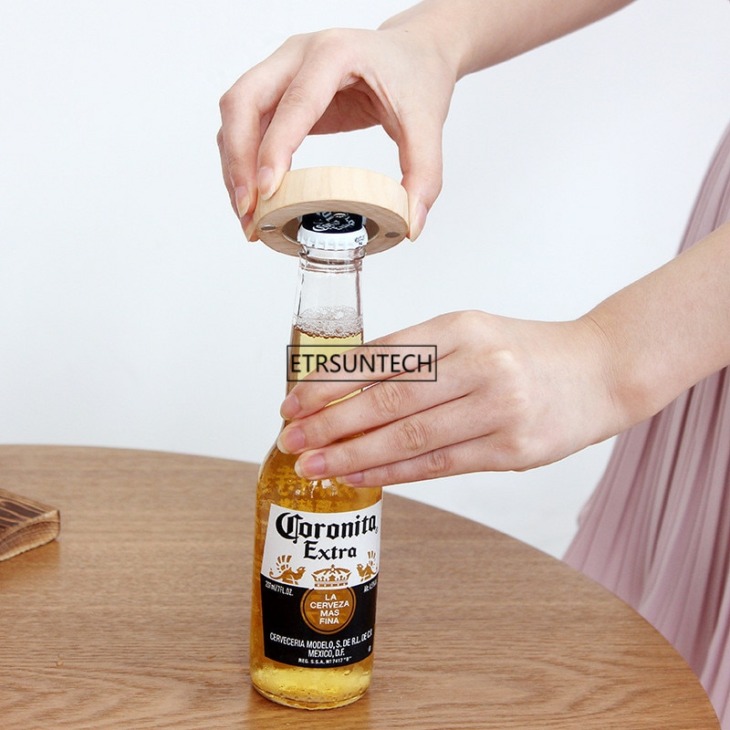 10 Darabos Üres Diy Fa Kerek Alakú Palack Nyitó Alsó Hűtőszekrény Mágneses Dekoráció Sörüveg Nyitó