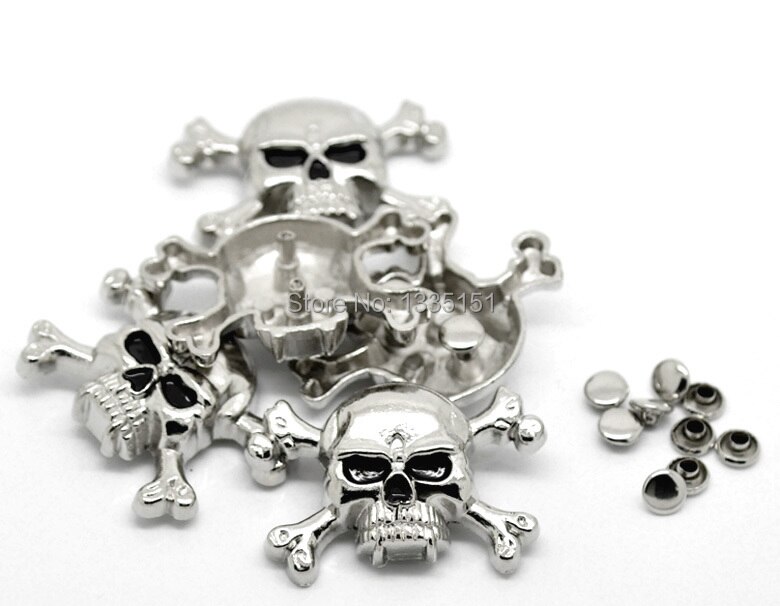 -10 Készlet Antik Ezüst Koponya Keresztcsont Szegecscsavarok Foltok 4,4 Cmx2,9 Cm 7 Mm-Es Táska Bőrruhák J1785