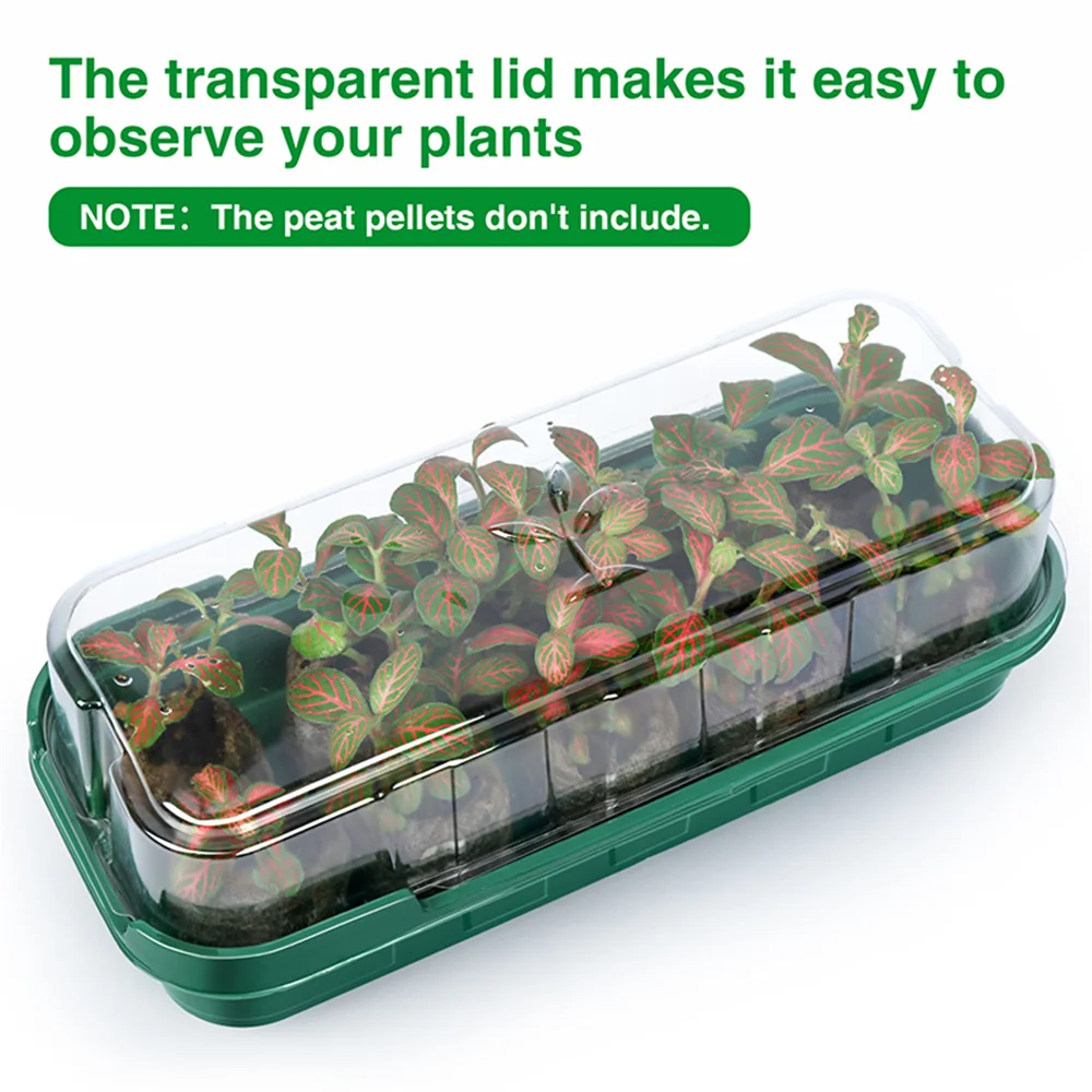 10 Lyukak Óvodai Edények Ültetve Mag Tálcát Átlátszó Borítással Újrafelhasználható Vetőmag Ültetési Üvegházhatás Doboz Palánták Indítója