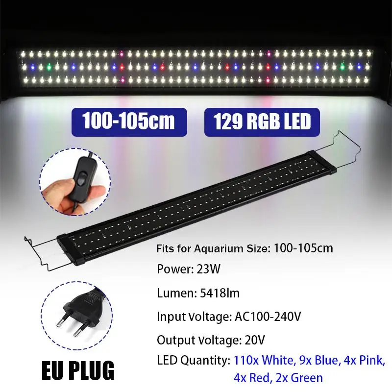 100-105 Cm 23W Akvárium Led-Es Halak Tartály Lámpája Meghosszabbítható Zárójelekkel 129 Led-Ek Teljes Spektrumú Növényi Lámpa Ac100-240V