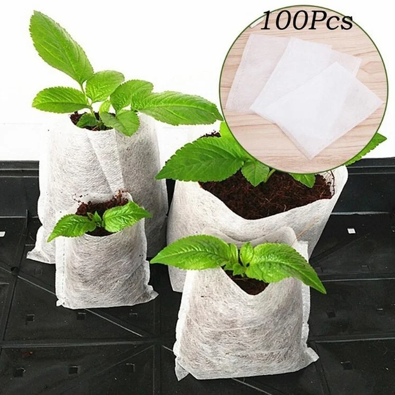 100 Db Biológiailag Lebontható, Nem Szőtt Szövött Óvodai Növény Termesztés Táska Palánták Termesztő Ültetvényes Ültető Edények Kert Környezetbarát Szellőztetés