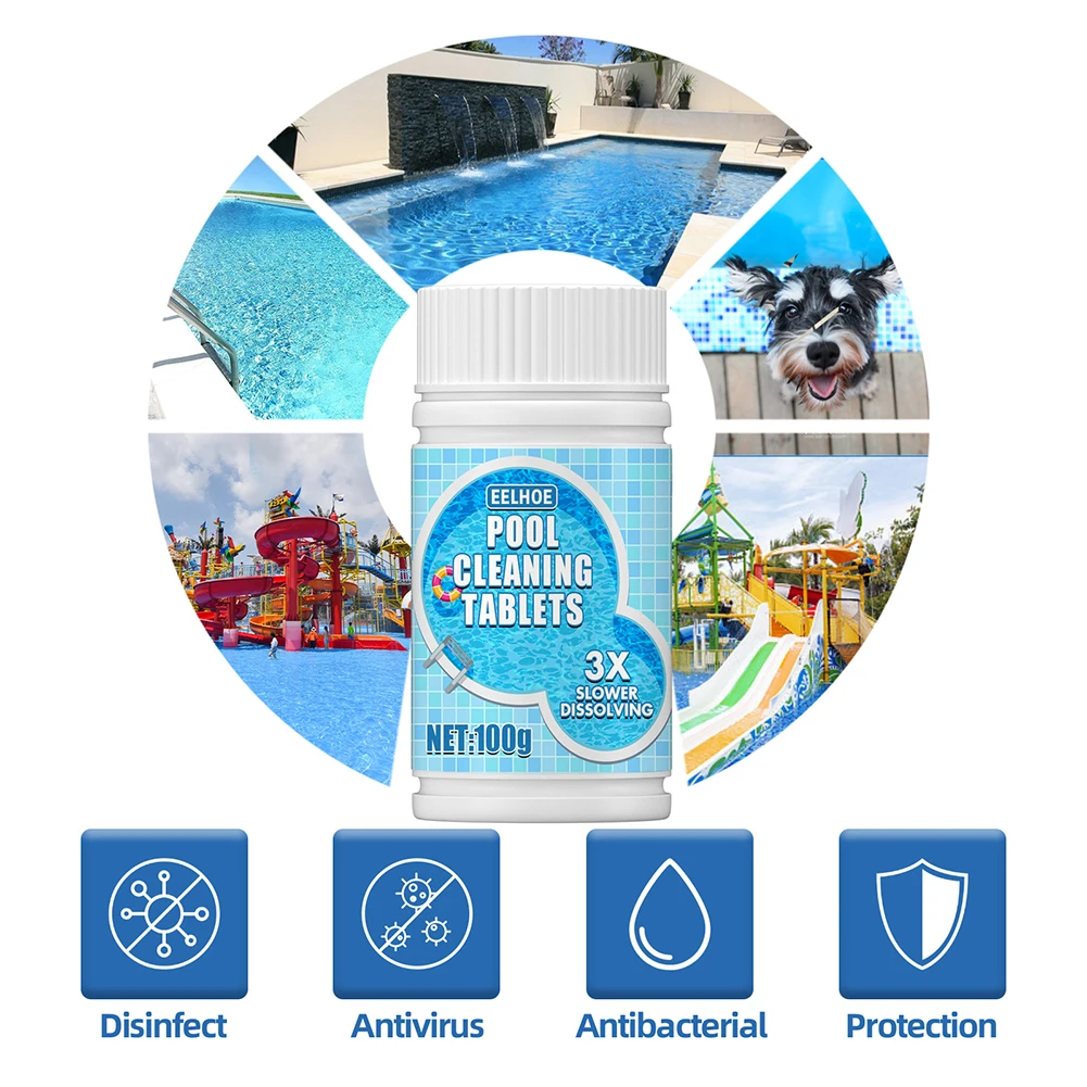 100 G Úszómedence Klór Tabletták Víz Fertőtlenítőtisztító -Tabletta Hosszú Ideig Tartó Medence Kád Gyógyfürdőpark Számára