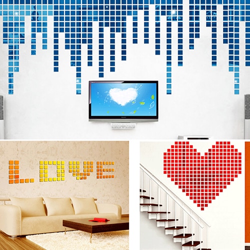 100Db 2X2Cm Akril 3D Falfestmény Fal Matricák Mozaik Tükörhatású Szoba Barkács Szögletes