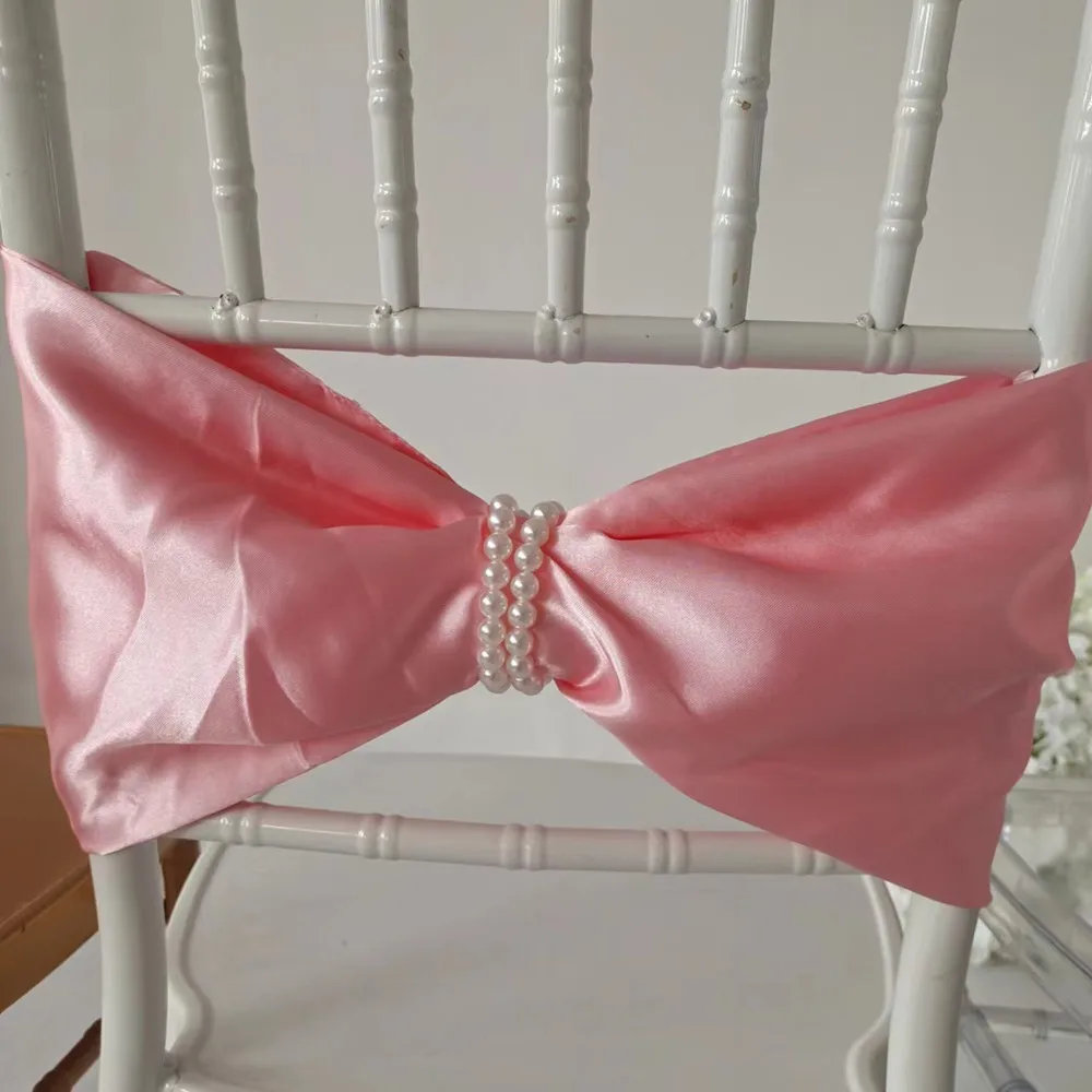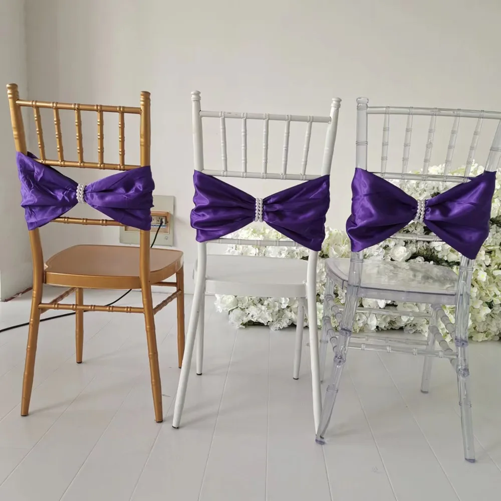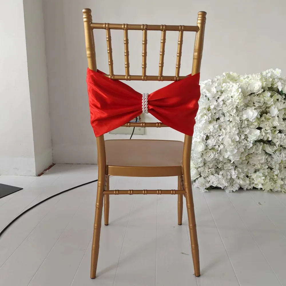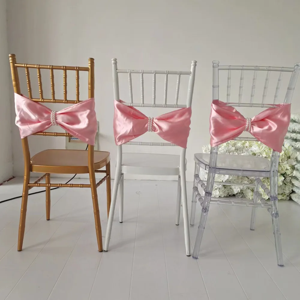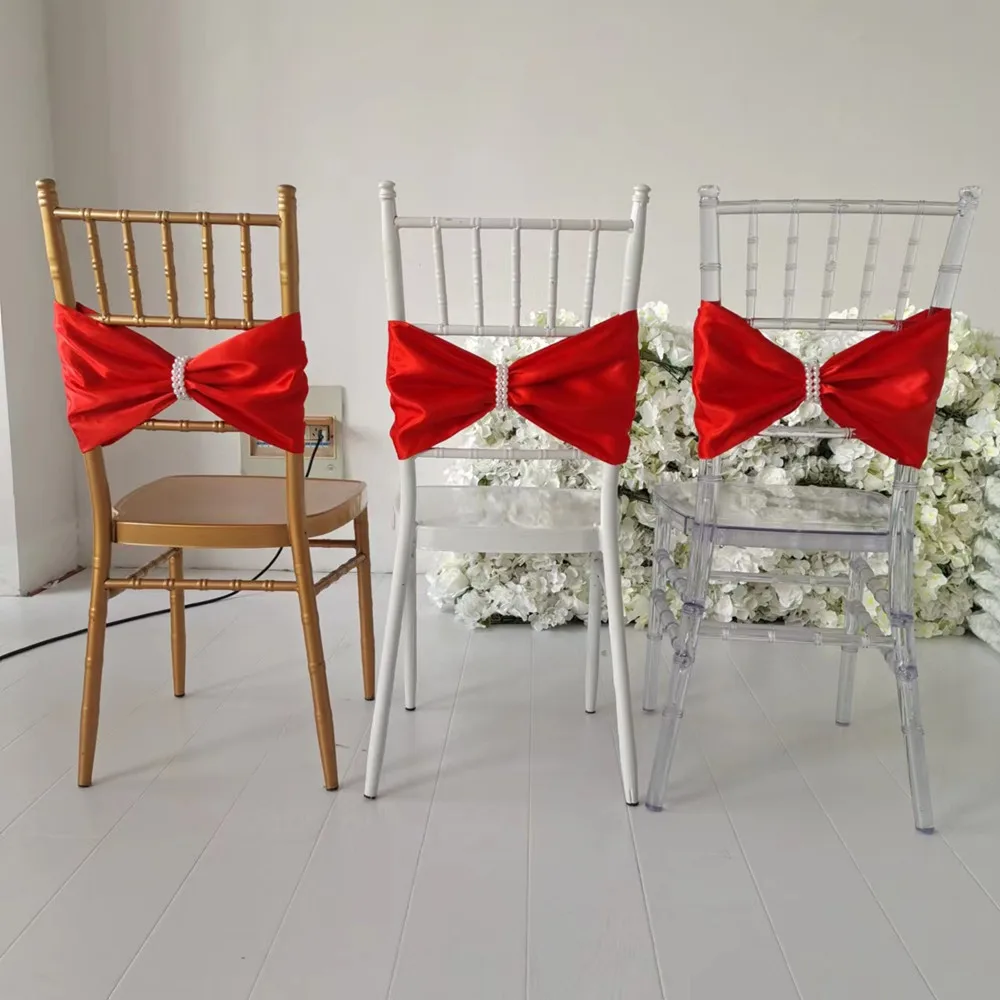 100Db Chiaavari Szatén Szék Szalag Szárnyak Gyöngy Csatjával Az Esküvői Party Dekorációhoz