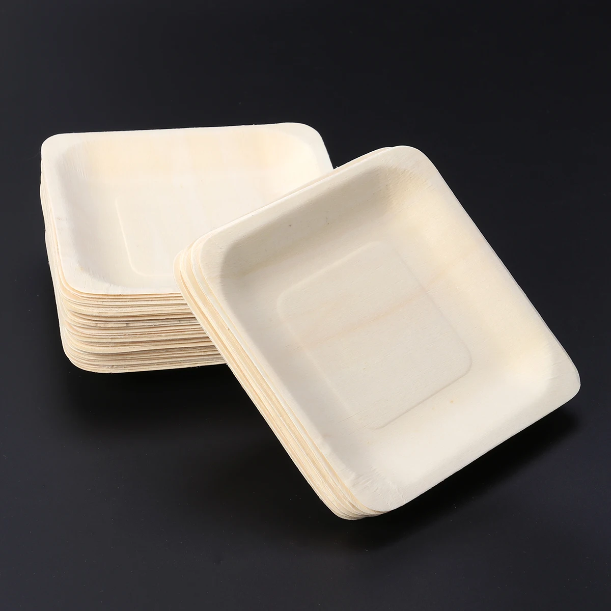 100Db Eldobható Négyzet Alakú Fa Lemezek Hordozható Asztali Edények Születésnapi Partira Esküvői Étterem Piknik Barbecue 140X140 Mm