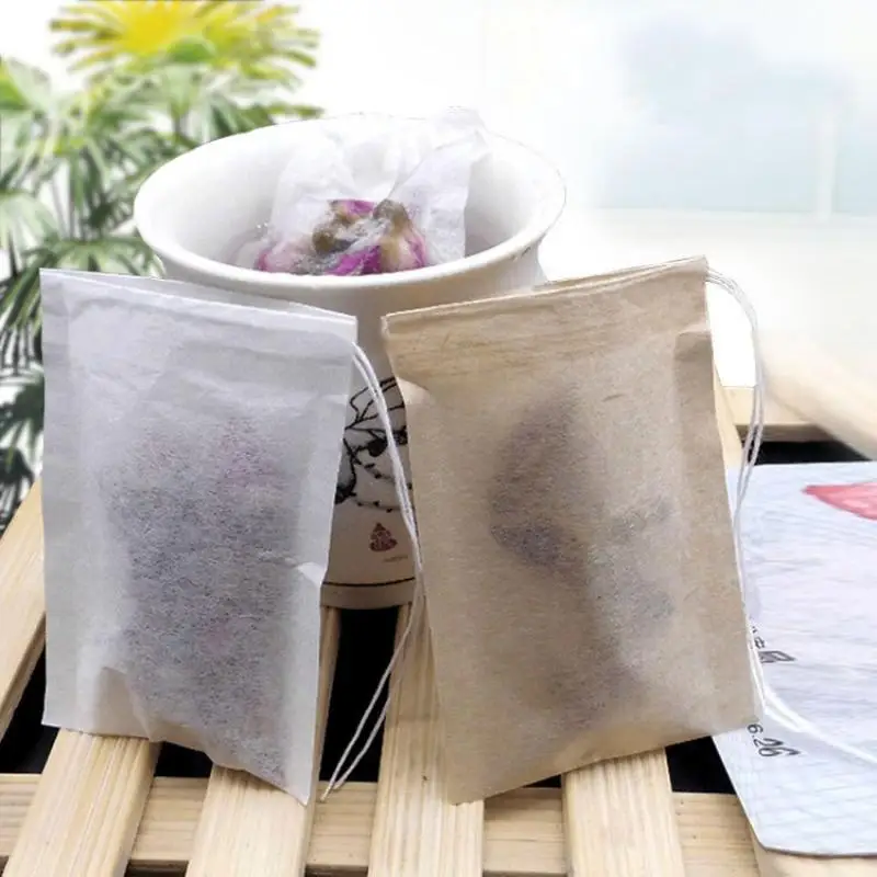 100Db/Tétel Eldobható Teás Táskák Nem Szőtt Szövet Tea Szűrőzsákok Fűszere Húzó Húrszűrőpapír A Laza Gyógynövényéhez