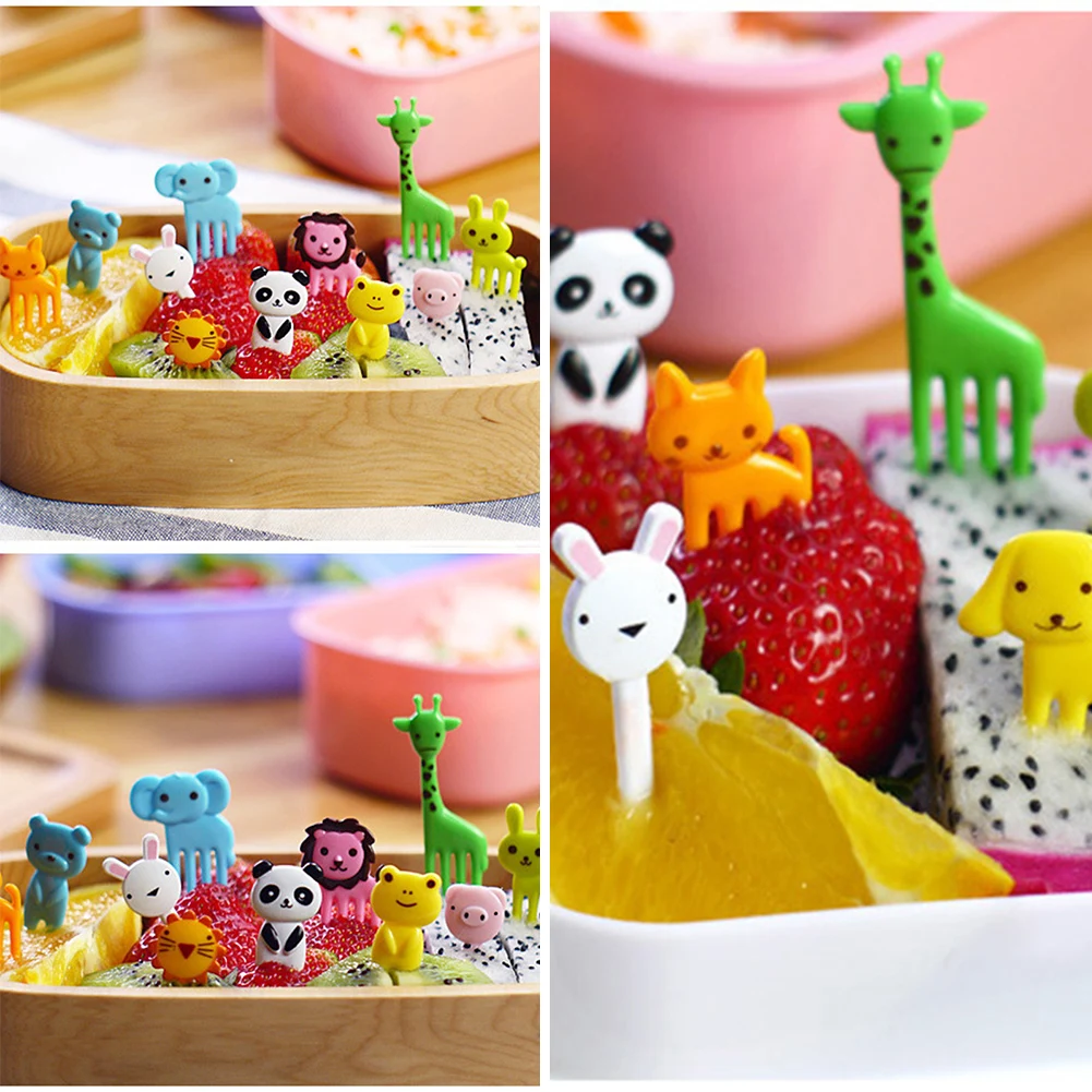 10Db/Beállított Állati Farm Gyümölcsvilla Mini Rajzfilm Gyerekek Snack Tortát Desszert Pick Fogpiszkáló Bento Ebédek Buli Dekoráció