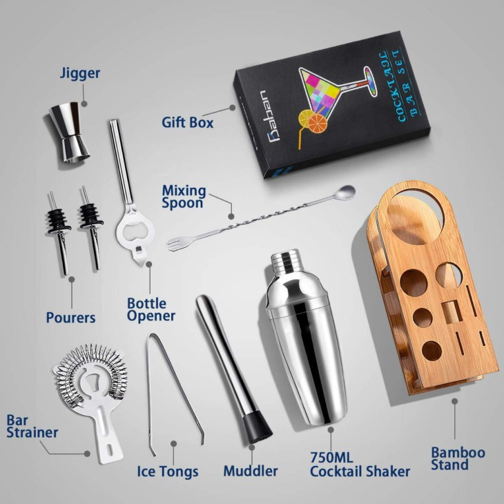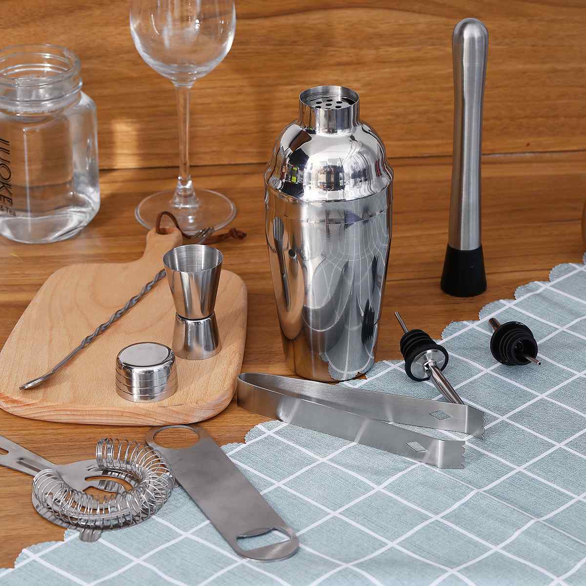 10Db Mojito Koktél Bár Shaker Keverő Gyártó Jégnövelő Mudder Bárware Rozsdamentes Acél Bár Készletek Csapos Szerszámok Bambuszállványtal