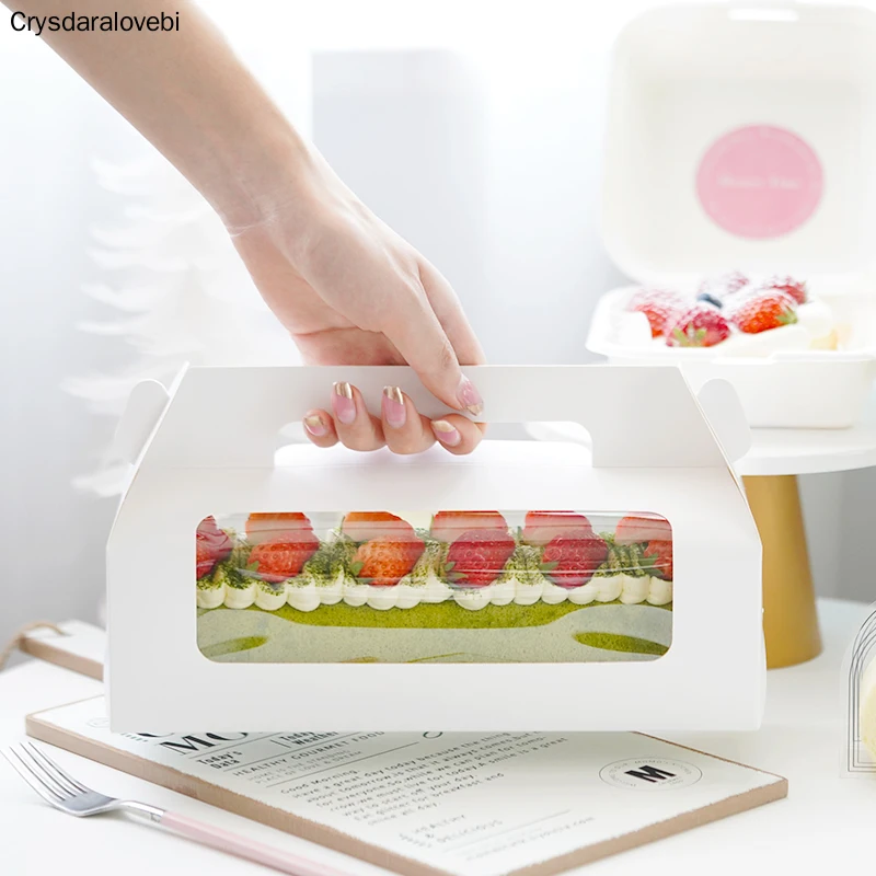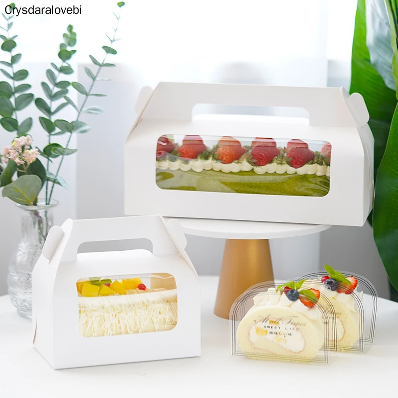 10Db -Os Fogantyúkás Süteménycsomagoló Dobozok Törölköző Tekercs Svájci Születésnapi Party Farvor Handmake Ajándék Átlátszó Ablakkal