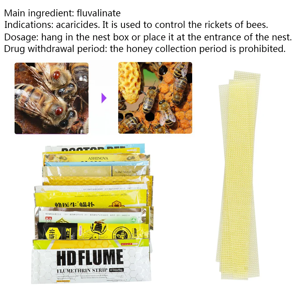 10Db/Pack Méhészeti Flualvalinate Csíkok Atkák Azonnali Gyilkos Miticid Méhgyógyszer Kezelés Acaricid Kontroll Gyógyszerkészletek