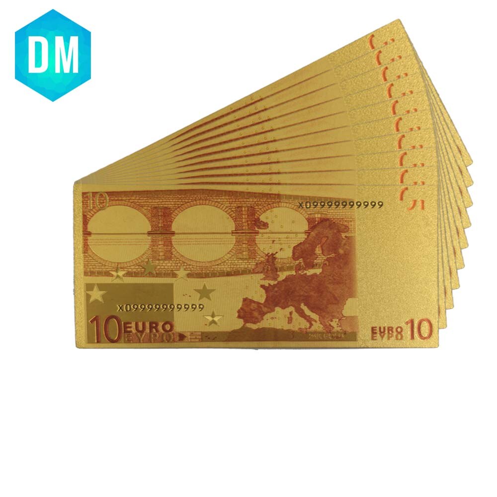 10Db / Tétel 24K Aranyfóliával Bevont 10 Euró Bankjegy Színben , Arany Bankjegyek Papírpénz Esküvői Visszatérés