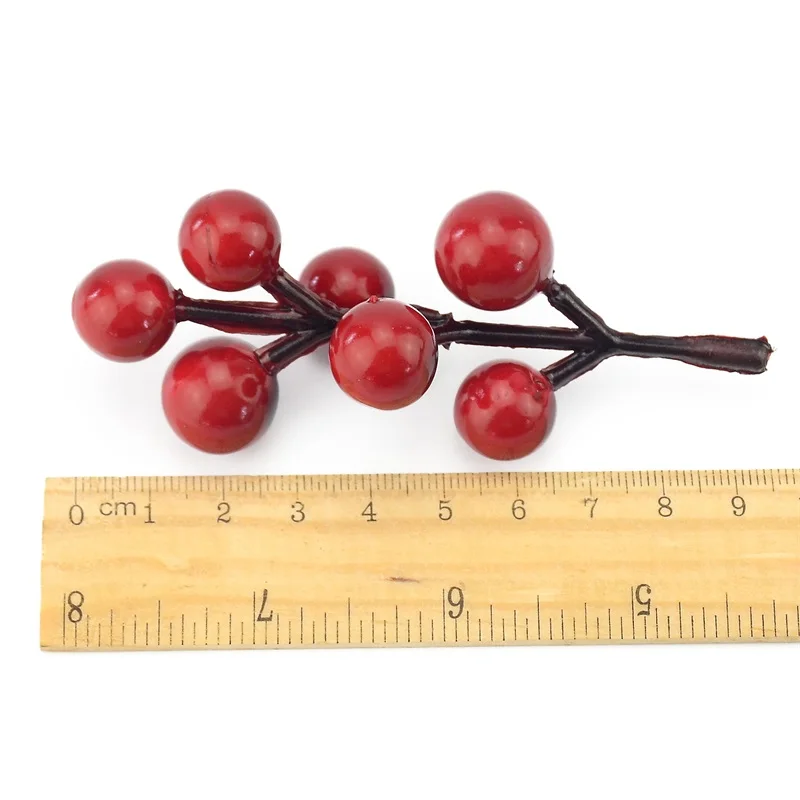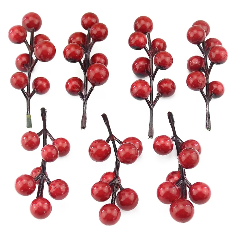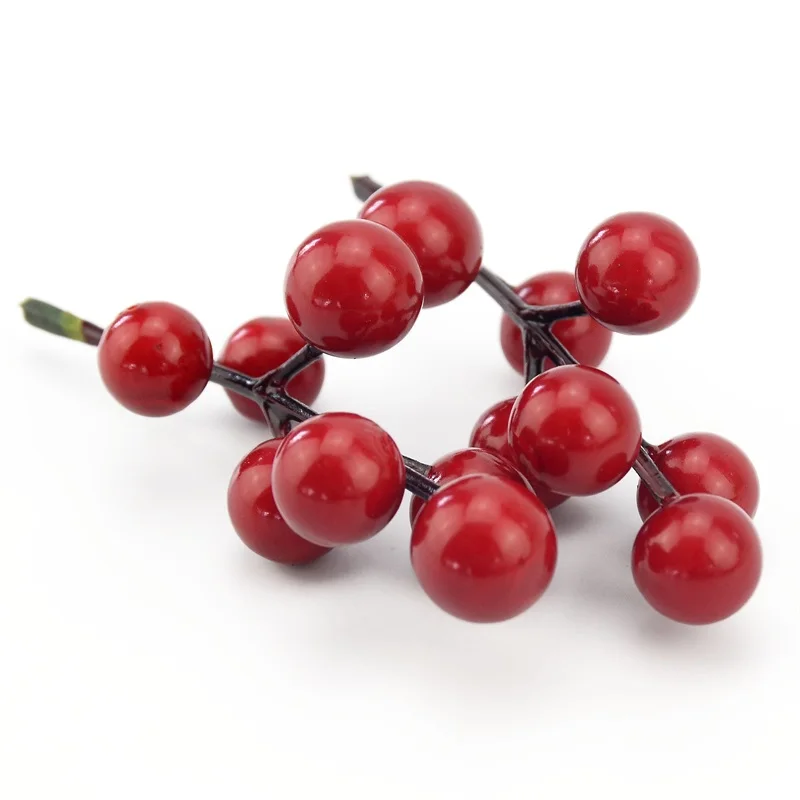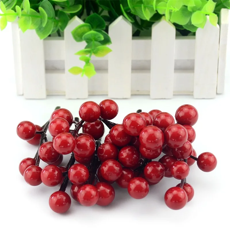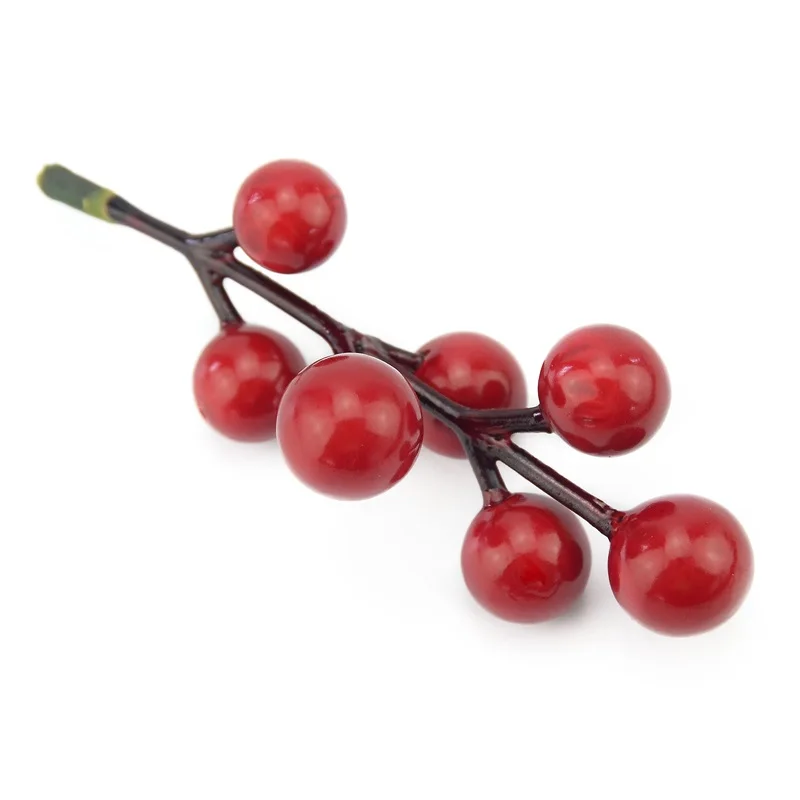 10Dcs7 Fej Mesterséges Mini Cseresznye Bogyók Gyöngy Porcalapú Barkácsos Esküvői Csokor Karácsonyi Dekoráció Szimuláció Gyümölcs Kézműves