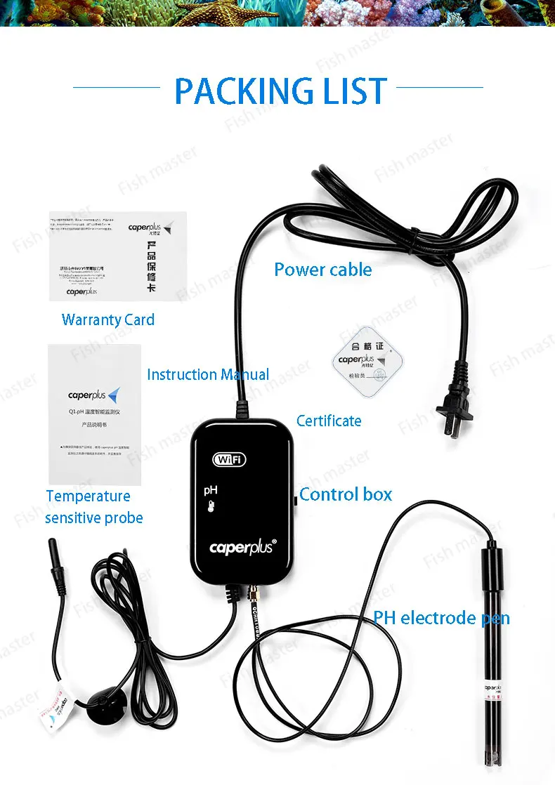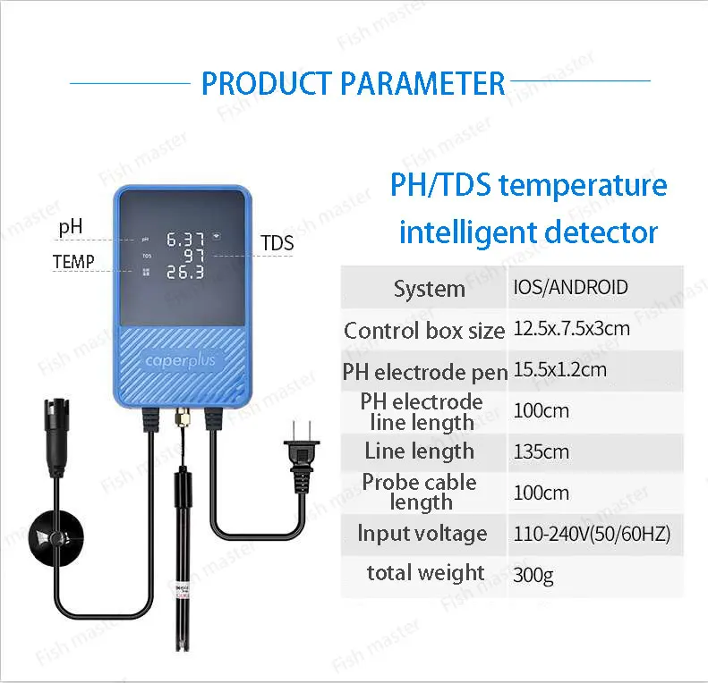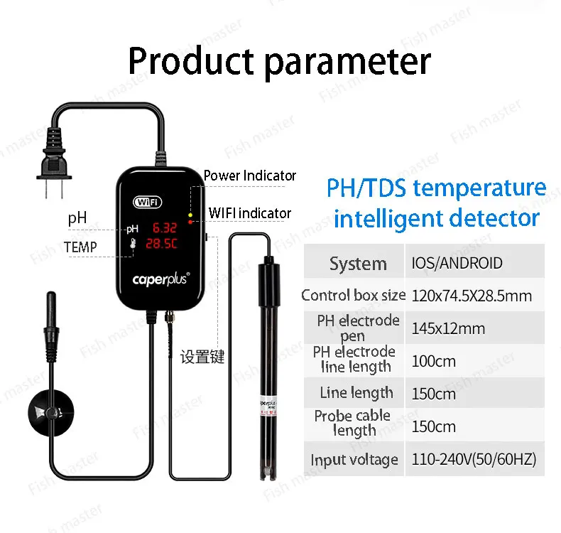 110-240V Caperplus Aquarium Q2 Ph Hőmérséklet Tds 3 1 Intelligencia Monitor Detektor Wifi App Ph Digitális Teszt Halárok