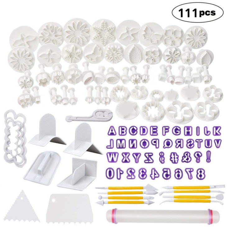 111Pcs Születésnapi Fondant Díszítő Szerszámok Set Cake Sugarcraft Fondant Tools Kit Rolling Pin Simább Domborsó