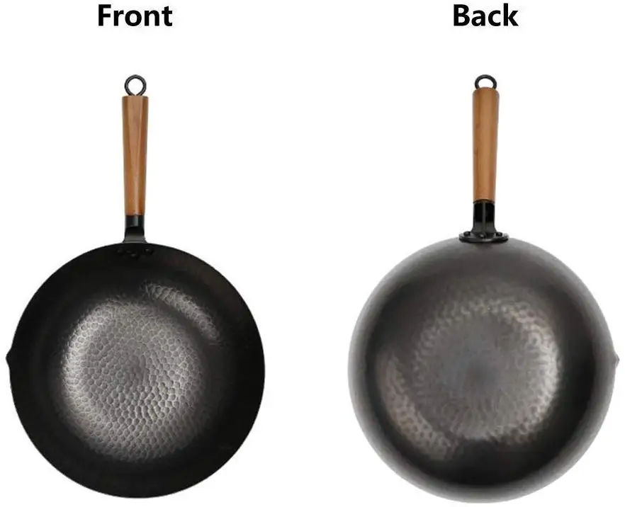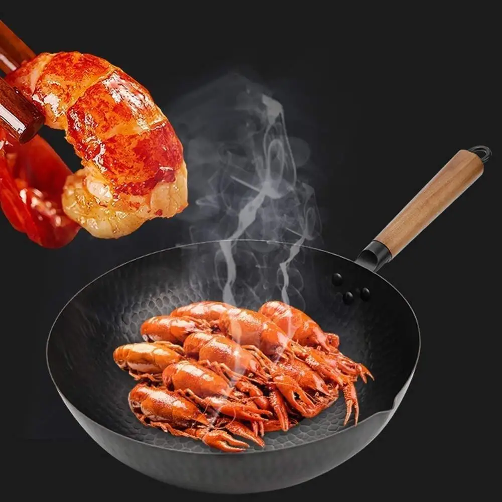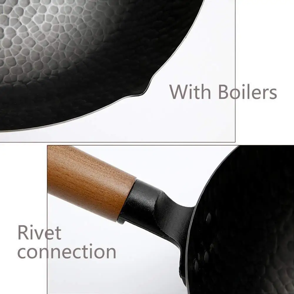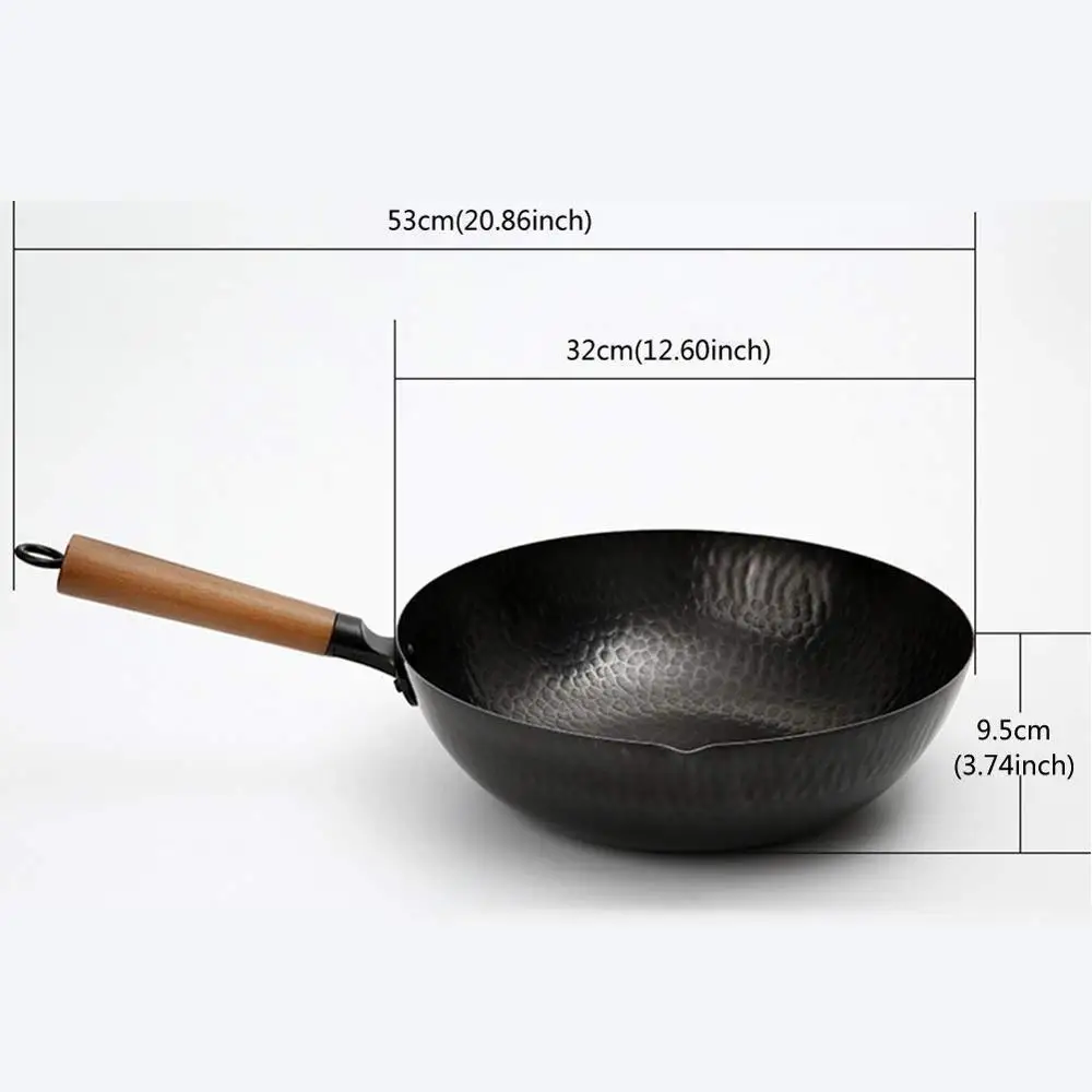 12 Hüvelykes Hagyományos Kézi Kalapácsos Vas Wok Főző Edények Serpenyők, Nem Bevont Kerek Fenekű Vas Wok Serpenyő