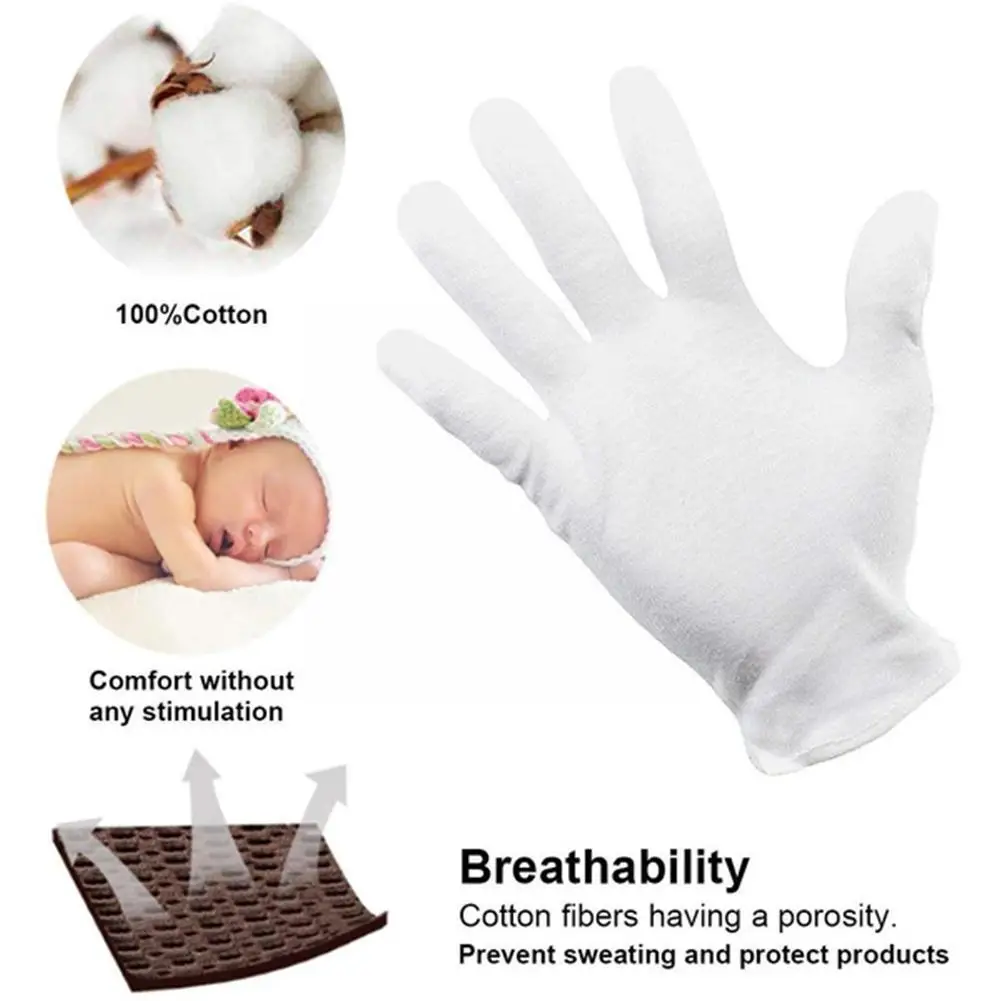 12 Pár Pamutfehér Kesztyű Általános Célú Hidratáló S-Xl Méretű Kesztyű, Amely Bélelő A9H5