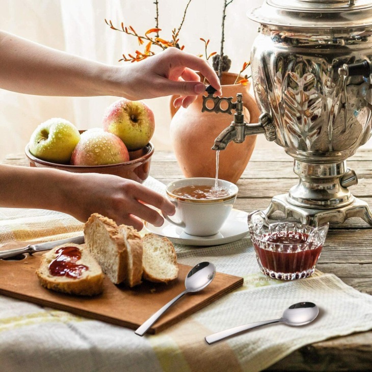 12Db Divat Rozsdamentes Acél Desszert Kanál Teakkorfanók Étkészletkészlet Sikatta Evőeszközök Tükör Polírozott Modern