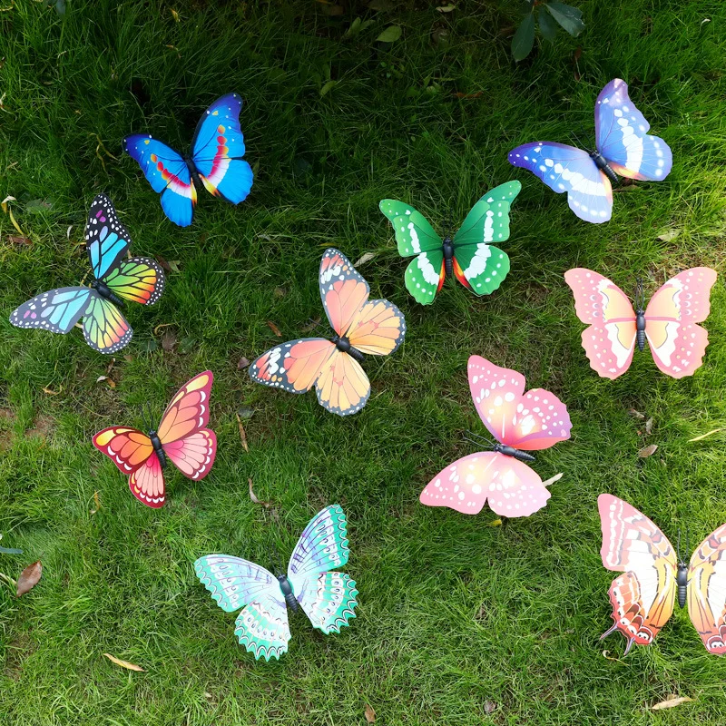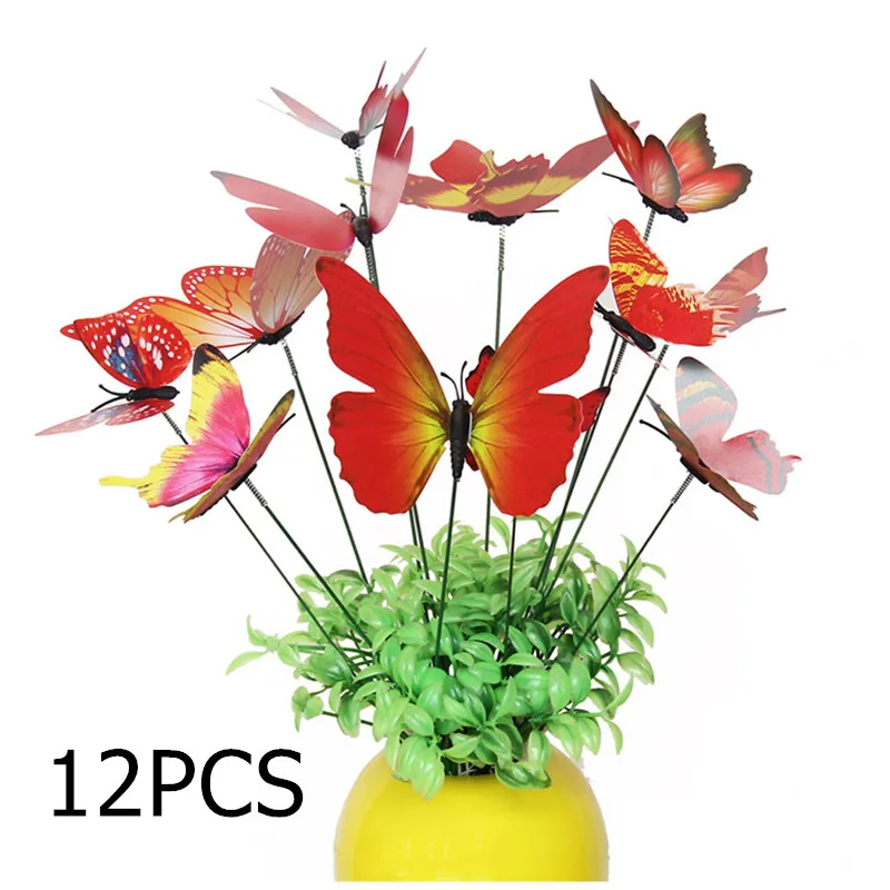 12Db Színes Pillangók Kerti Udvar Ültetvényes Pillangó Tét Dekoracion Kültéri Dekoráció Virág Edények