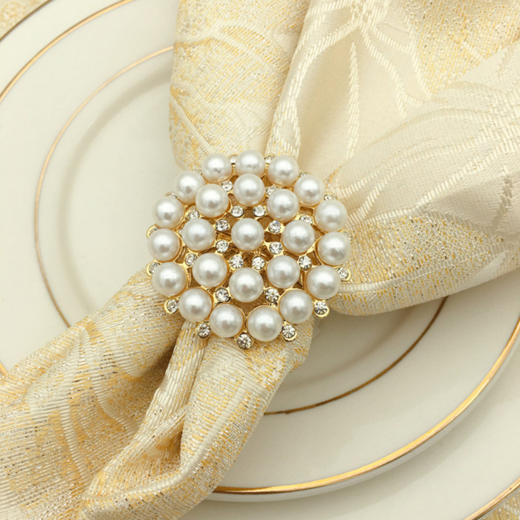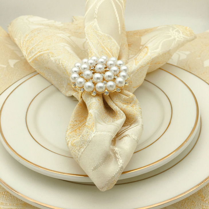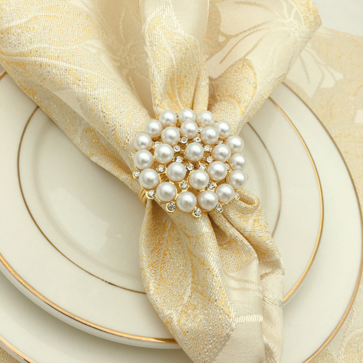 12 db Shseja Luxus Szalvéta Szálloda Esküvői Készletek Szalvéta Gyűrű Aranyozott Gyémánt Szalvéta Buckle Asztali Dekoráció