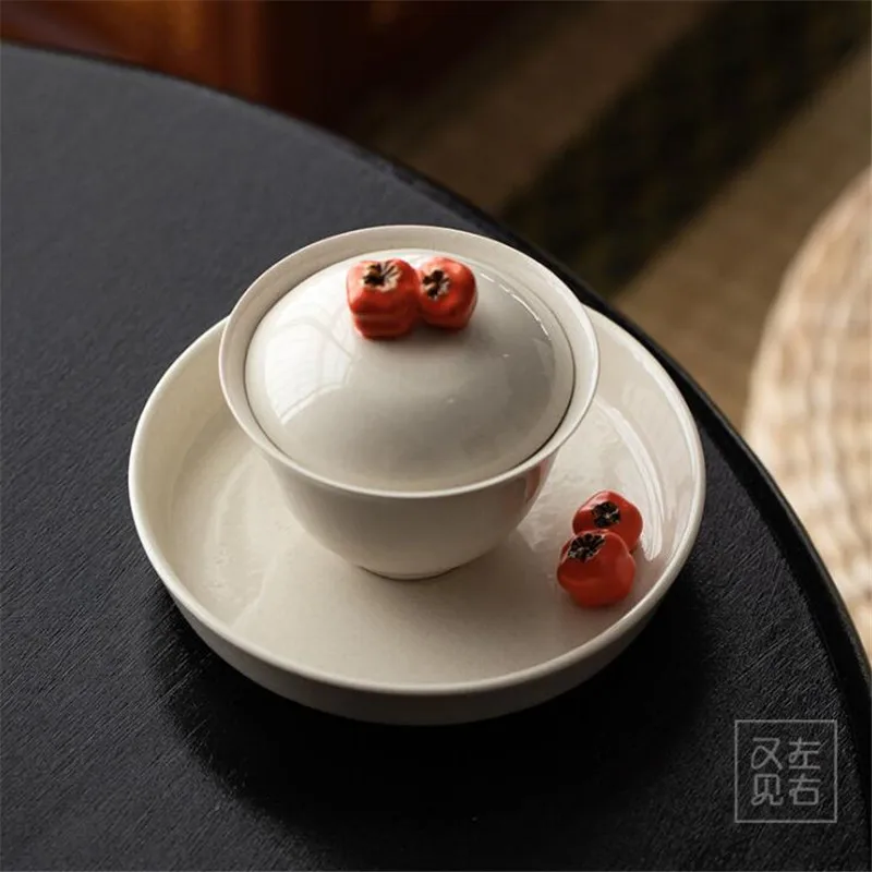 130 Ml -Es Kerámia Növény Hamu Kézzel Készített Datolyaszilva Tureen Kerámia Kung Fu Tea Tál Sopera De Ceramica Gaiwan Krizantéma Tea Ajándék