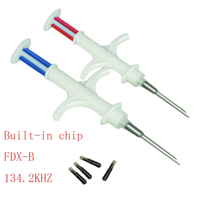134,2 Khz Kutya Mikrochip 1,4X8 Mm -Es Pet Rfid Chip Üvegtranszponder Cica Kiskutya Azonosító Regisztrációs Címke Műanyag Injektor Egységgel X100