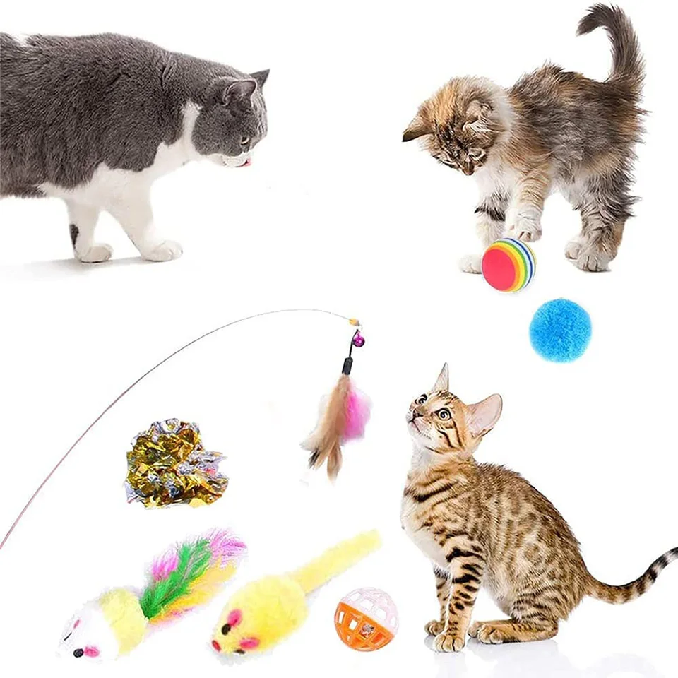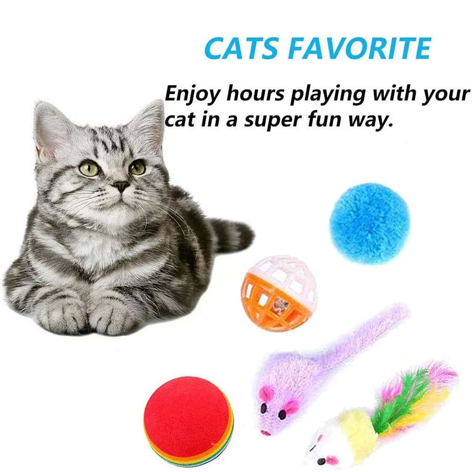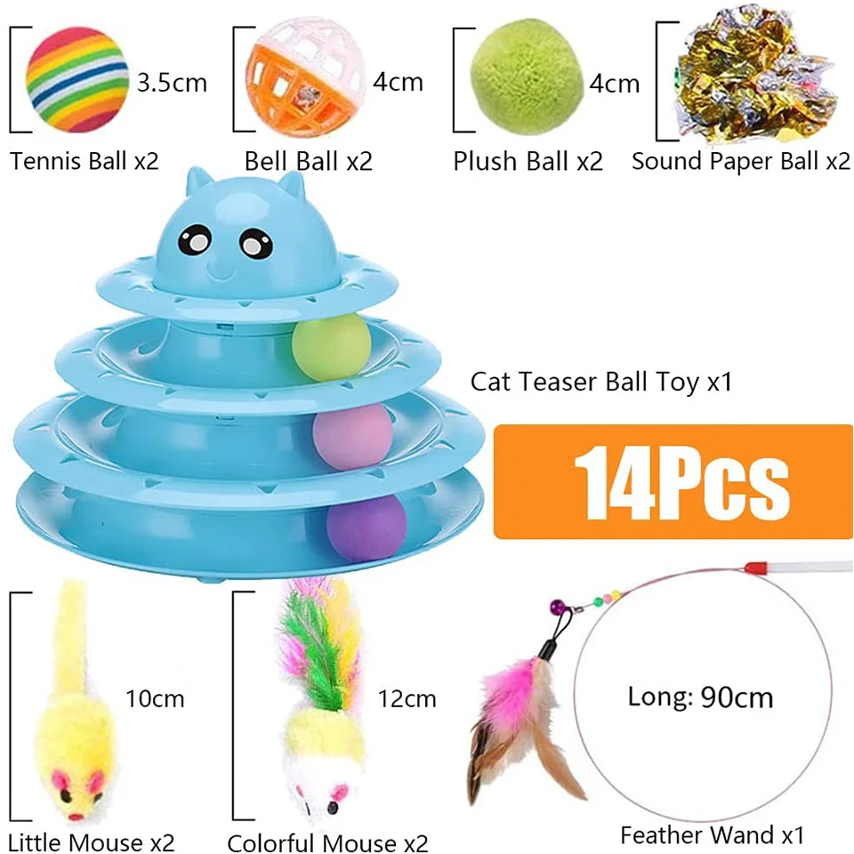 14 Pack Cat Játékok Interaktív Beltéri Macskákhoz Cica Játék Szórakoztató Görgő Gyakorlók 3 Szintű Macska Teaser Labdajátékok Macska Toll Pálca Játék