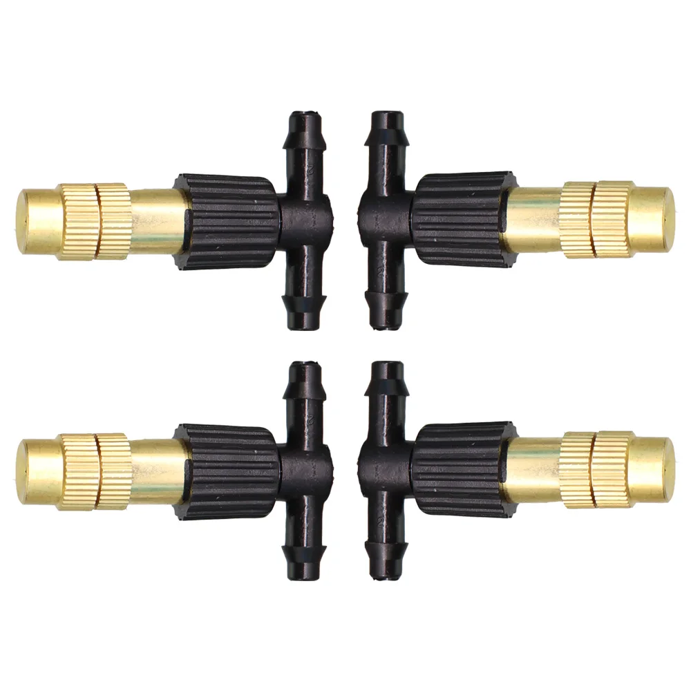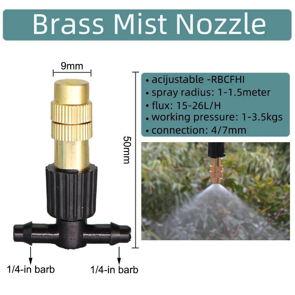 15/25/50/100/200Db Kerti Sárgaréz Ködös Öntözési Fúvóka 1/4 ‘ Barb Póló Csatlakozó Állítható Rézhűtő Spray Porlasztó