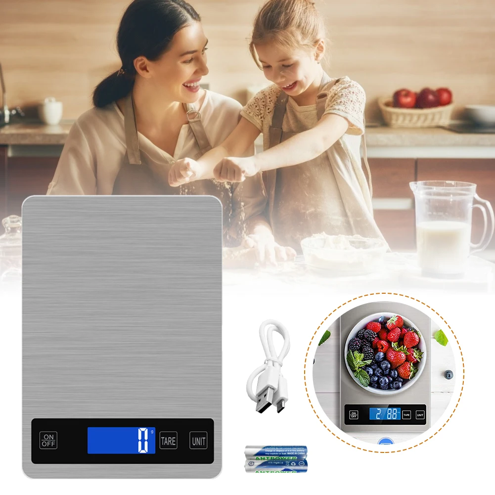 15 Kg 1 G/0,1Oz Digitális Konyhai Skála Elektronikai Skála Rozsdamentes Acél Mérleg Lcd Digitális Főzési Skála Töltés Usb