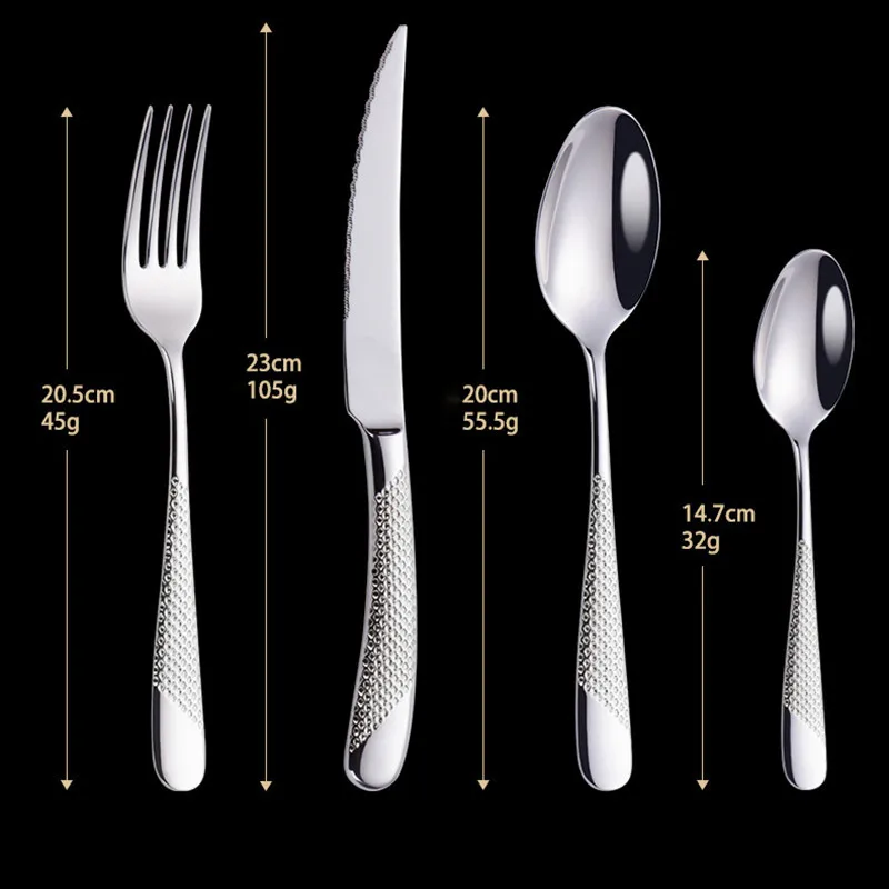 16 db Tükör Asztali Edények Rozsdamentes Acél Evőeszközök Konyhai Kések Villák Kanál Szett Luxus Étkészletek Vacsora Ezüst Evőeszközök