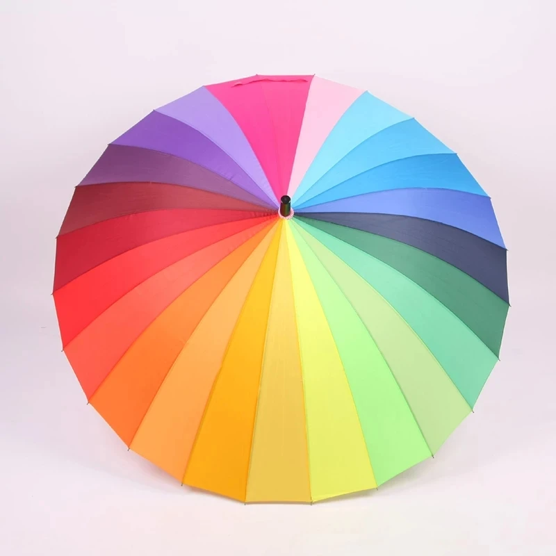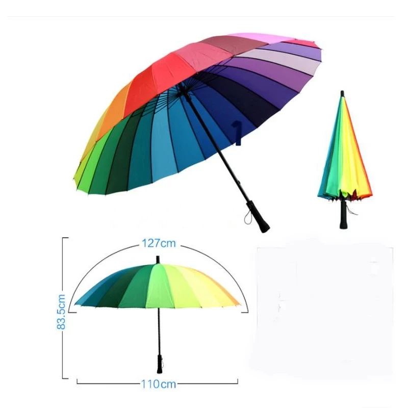 16K 24K Új Hosszú Fogantyú Szivárványos Esernyő Dupla Kézzel Nyitott Acél Egyenes Rúd Luxus Nagy Szélálló