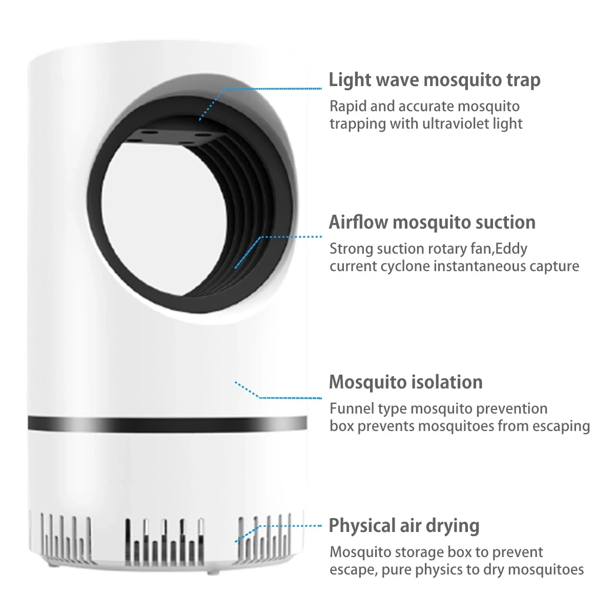 1Db Beltéri Elektromos Szúnyog Csapda Szúnyoggyilkos Lámpa Usb Tápegységgel És Adapter Szívóventilátor Kültéri Rovar Légycsapda
