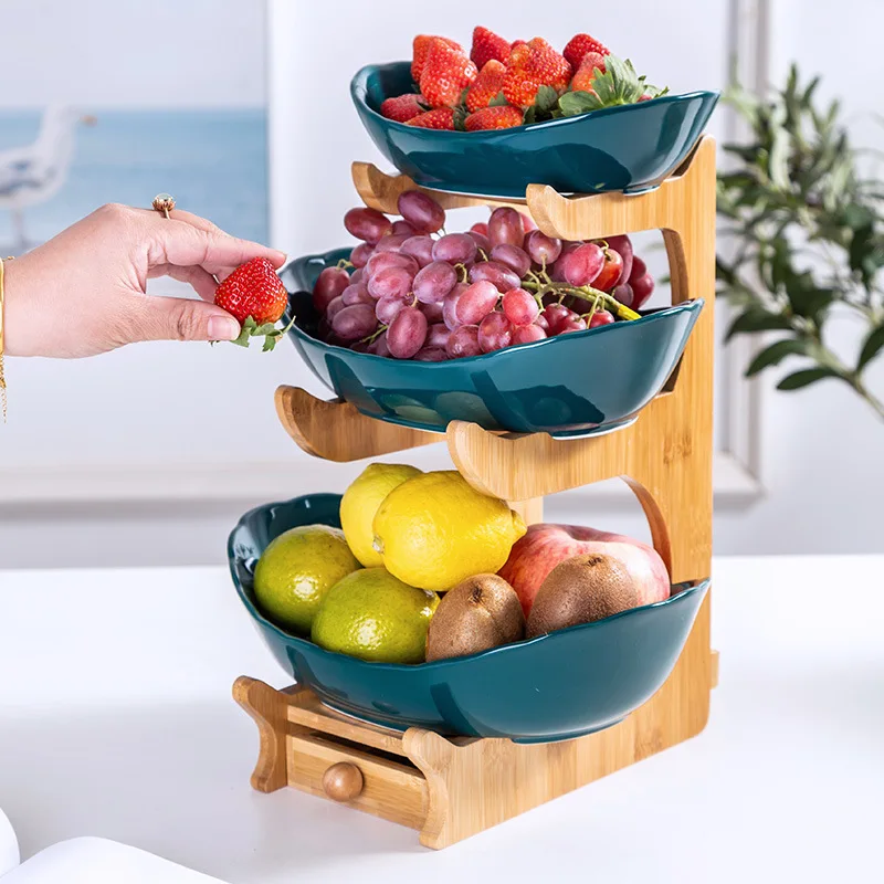 1Db Kerámia Háromrétegű Gyümölcslemez Kreatív Modern Szárított Gyümölcs Kosár Snacks Tányér Desszertek Otthoni Asztali Edények