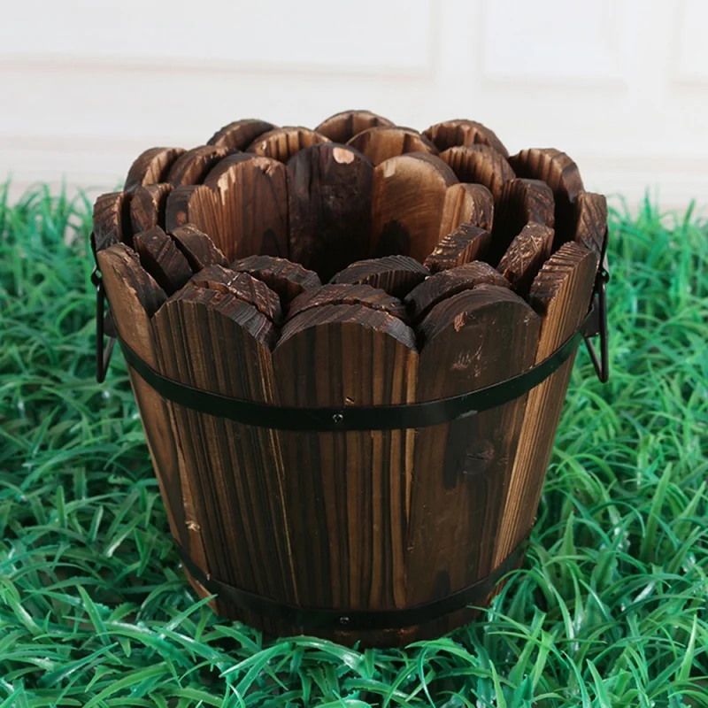 1Db Virág Edény Kültéri Fa Barna Kerek Lapos Száj Hatszög Hulláma Ültetvényes Hordó Retro Stílusú Kerti Új