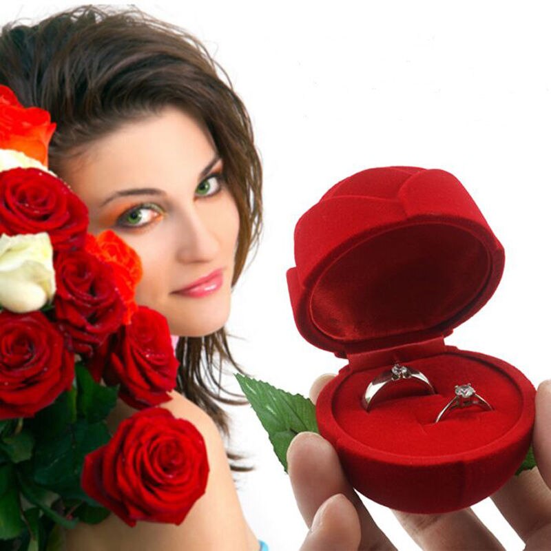 1Db Vörös Bársony Rózsa Eljegyzés Esküvői Doboz Tároló Tok Fülbevalókhoz Gyűrű Medál Ékszerek Szár Nélkül
