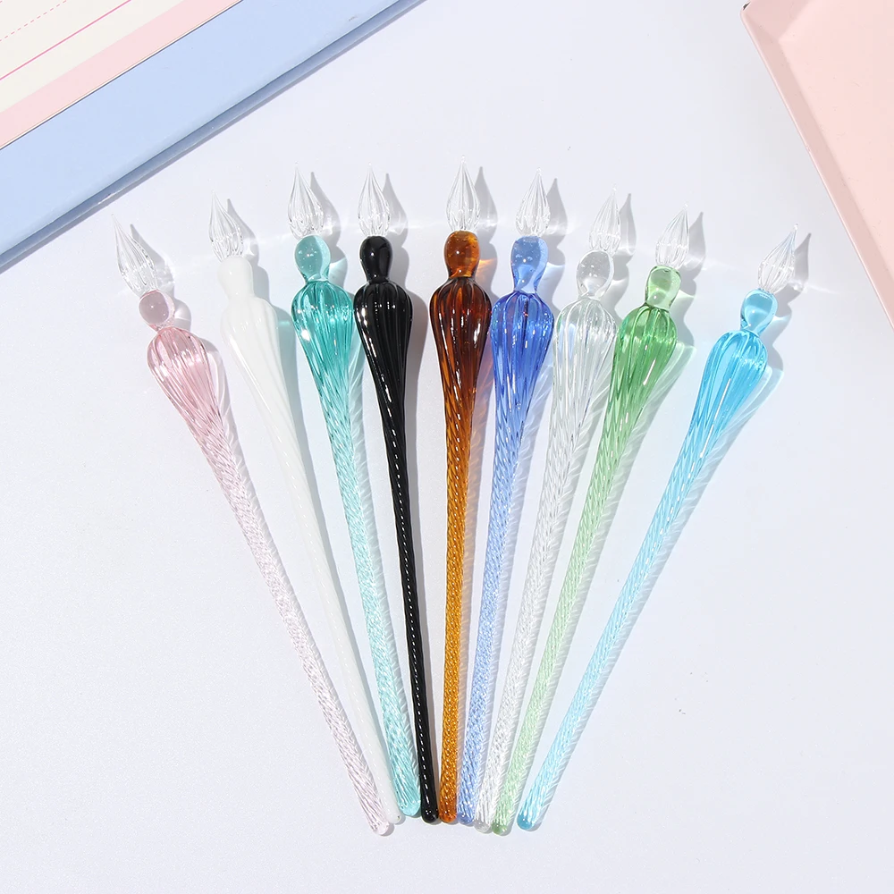 1Dc Retro Multolor Kézzel Készített Üveg Dip Toll Kristály Tollholder Dörzsölt Kalligráfia Szökőkút Kitöltő Tinta