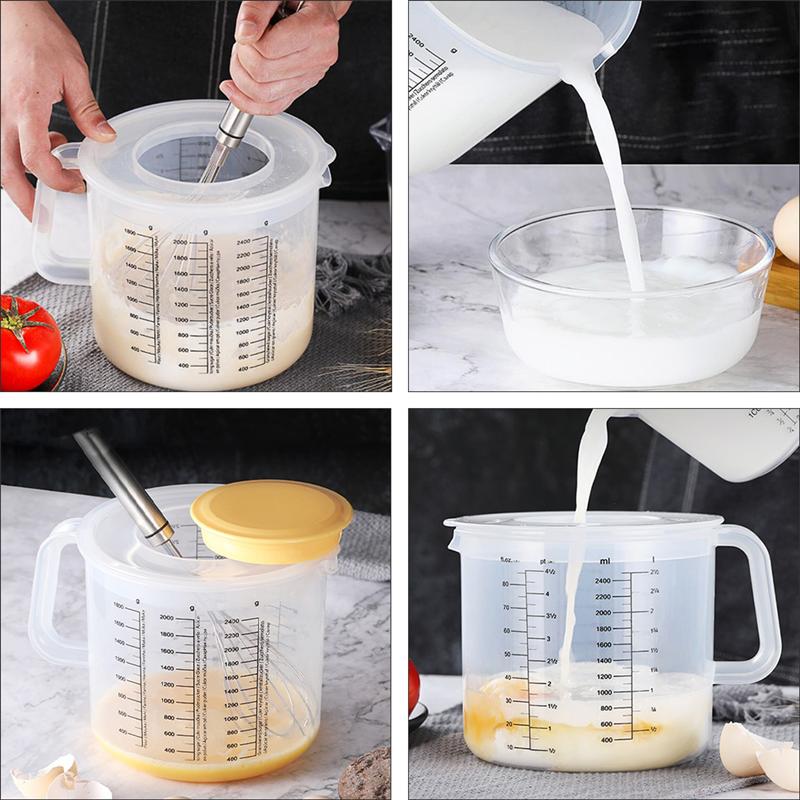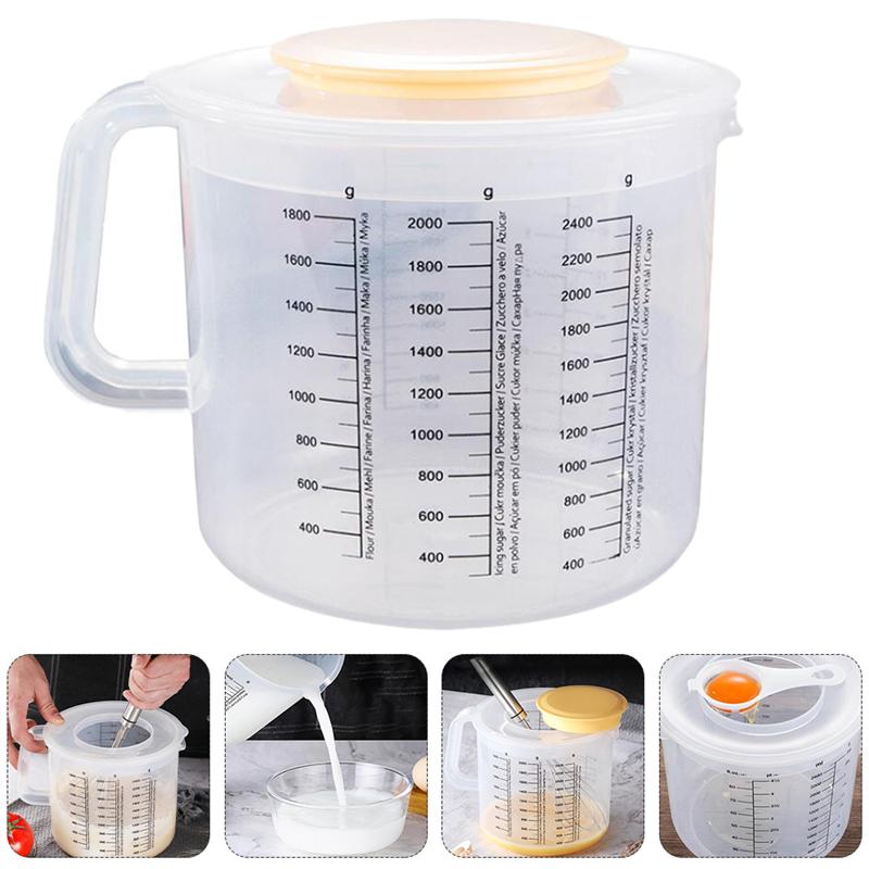 1Pc 2,5L Sütés Mérő Csésze Skála Háztartási Keverő Tál Fedéllel Otthoni Konyhai Sütéshez (Fehér)