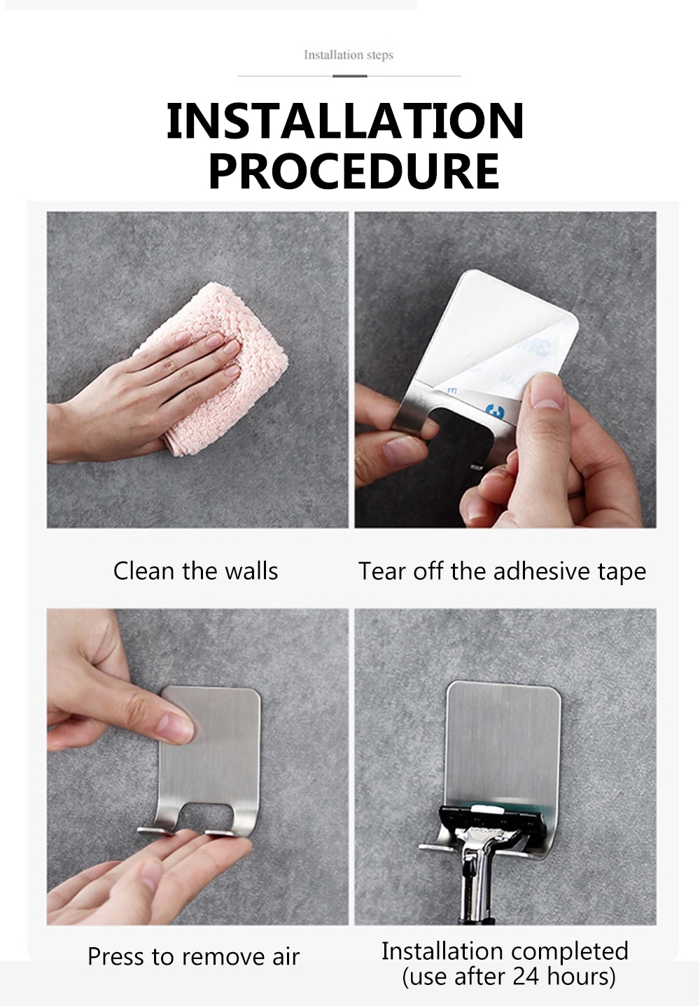 1Pc 304 Rozsdamentes Acél Borotvatartó Férfi Borotválkozó Borotva Állvány Polc Tároló Fürdőszoba Kampószervező