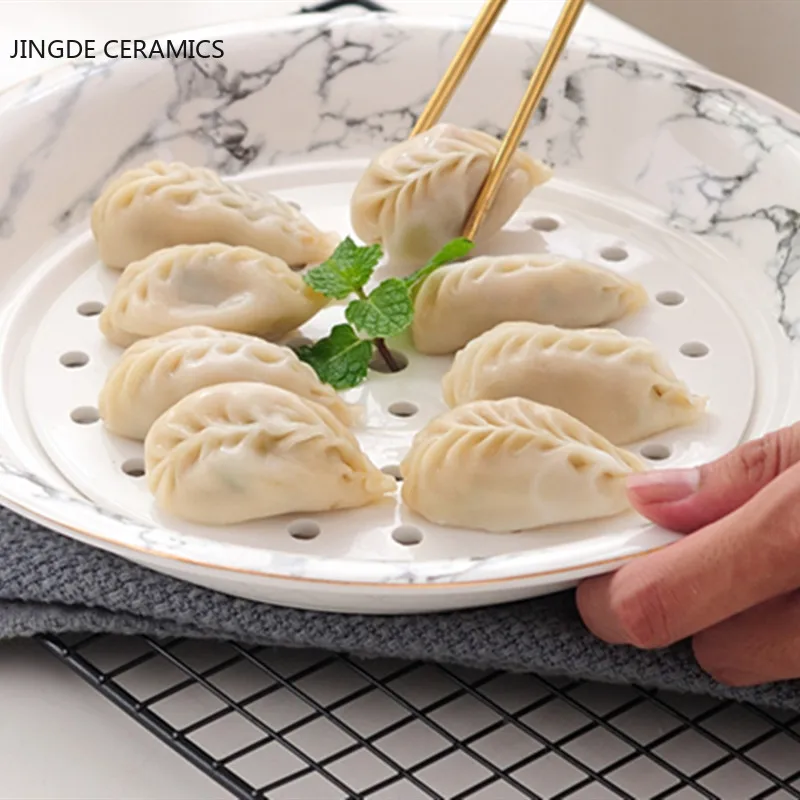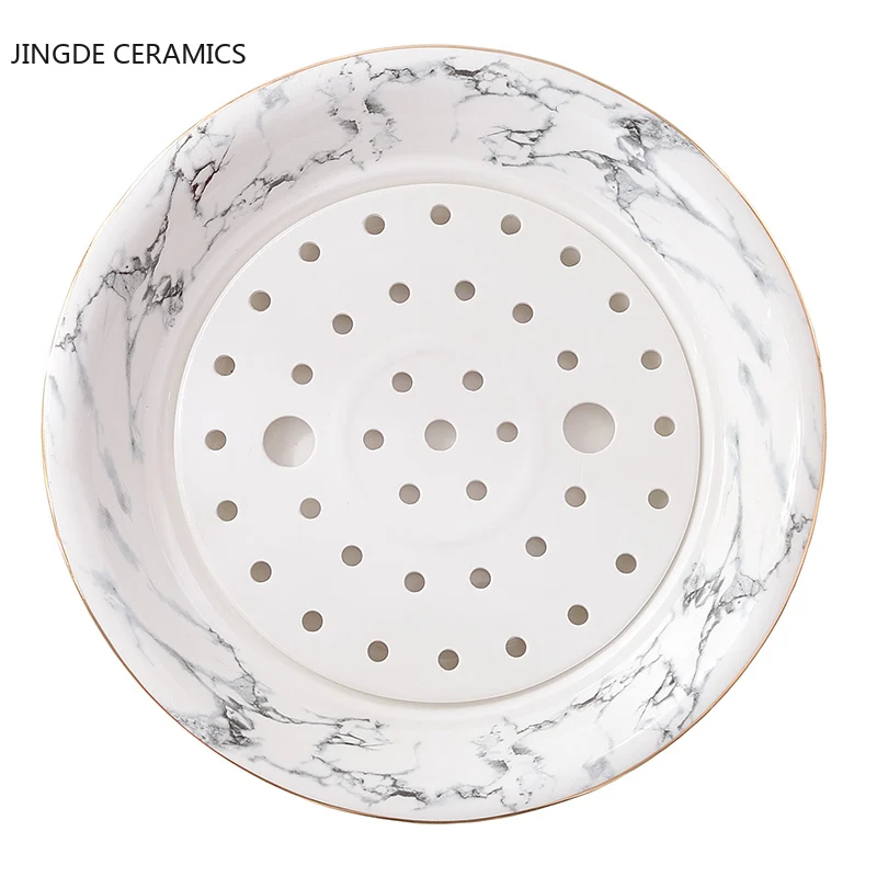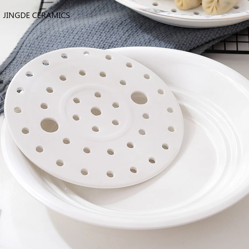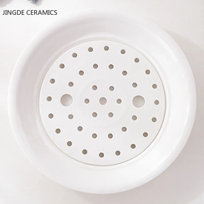 1Pc Nordic Double Rétem Gombóc Kerámia Kerek Alakú, Párolt Halak Párolt Kukorica Multifunkciós Konyhai Készletek Csatornával