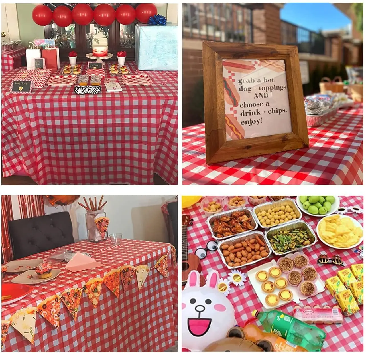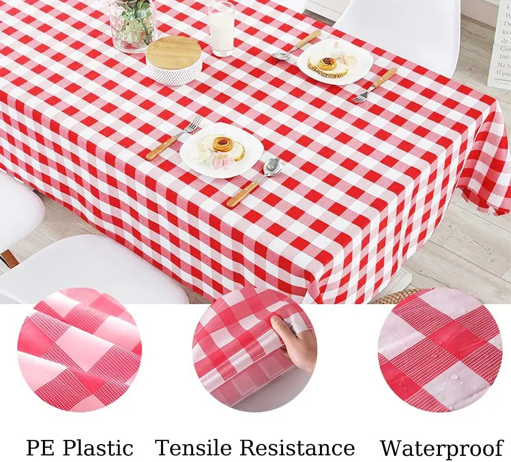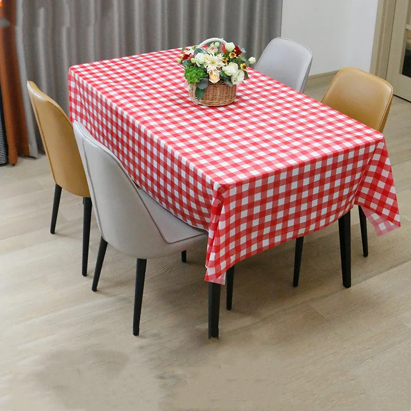 1Pc Piros, Fehér Kockás Terítő 137X274Cm Műanyag Eldobható Téglalap Asztal Borító A Születésnapi Party Piknik Dekorációhoz