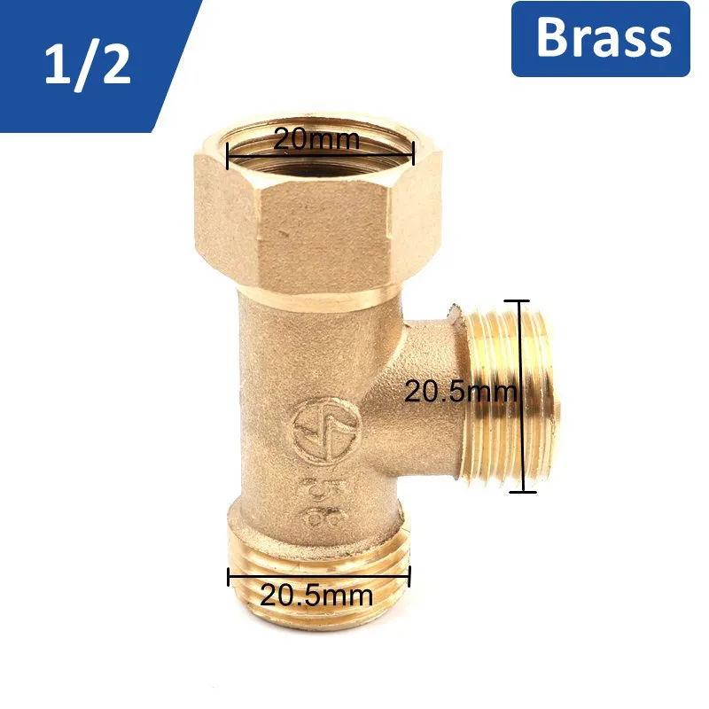 1Pc Sárgaréz 1/2 „Szál Tee Csatlakozó Rézkert Öntözőkízületek Vízcső Cső Háromirányú
