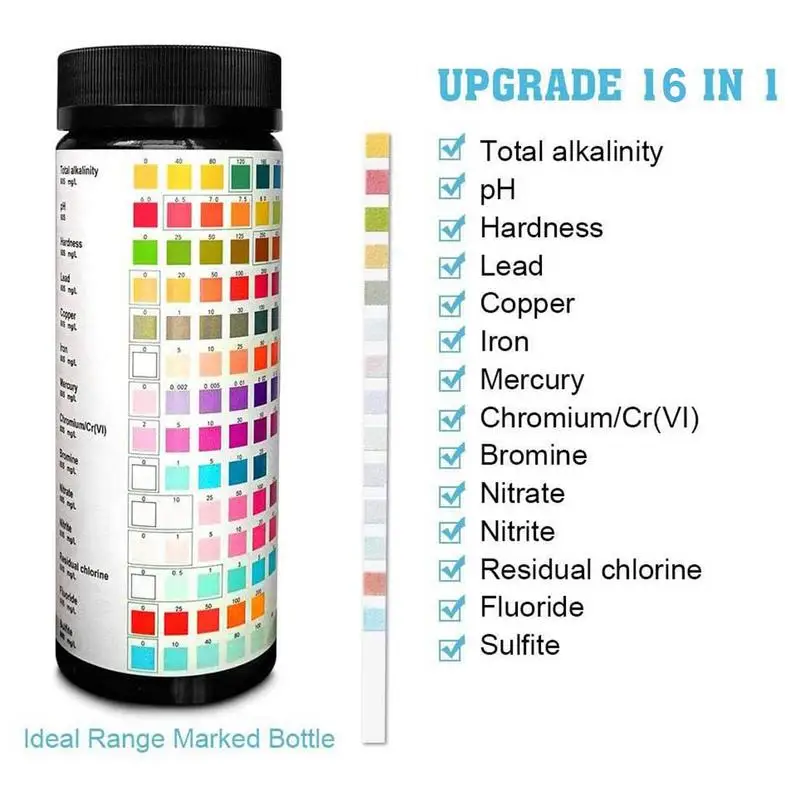 1Pool Gyógyfürdő -Víz Tesztcsíkokban Ivóvíz -Tó Pezsgőfürdő Ph Klór Keménység Vízminőségi Tesztpapír