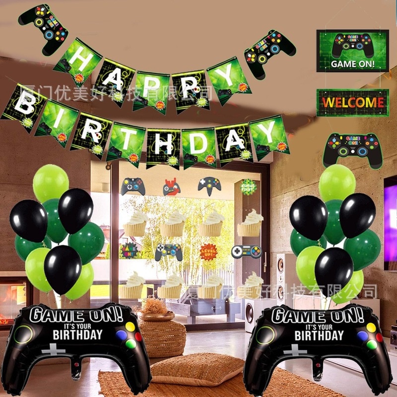 1Set Játék Léggömbökön Fekete Gamepad Fiú A Transzparensen Születésnapi Party Dekorációk Gyerekek Mérkőzés Kellékek Gaming Cake Topper