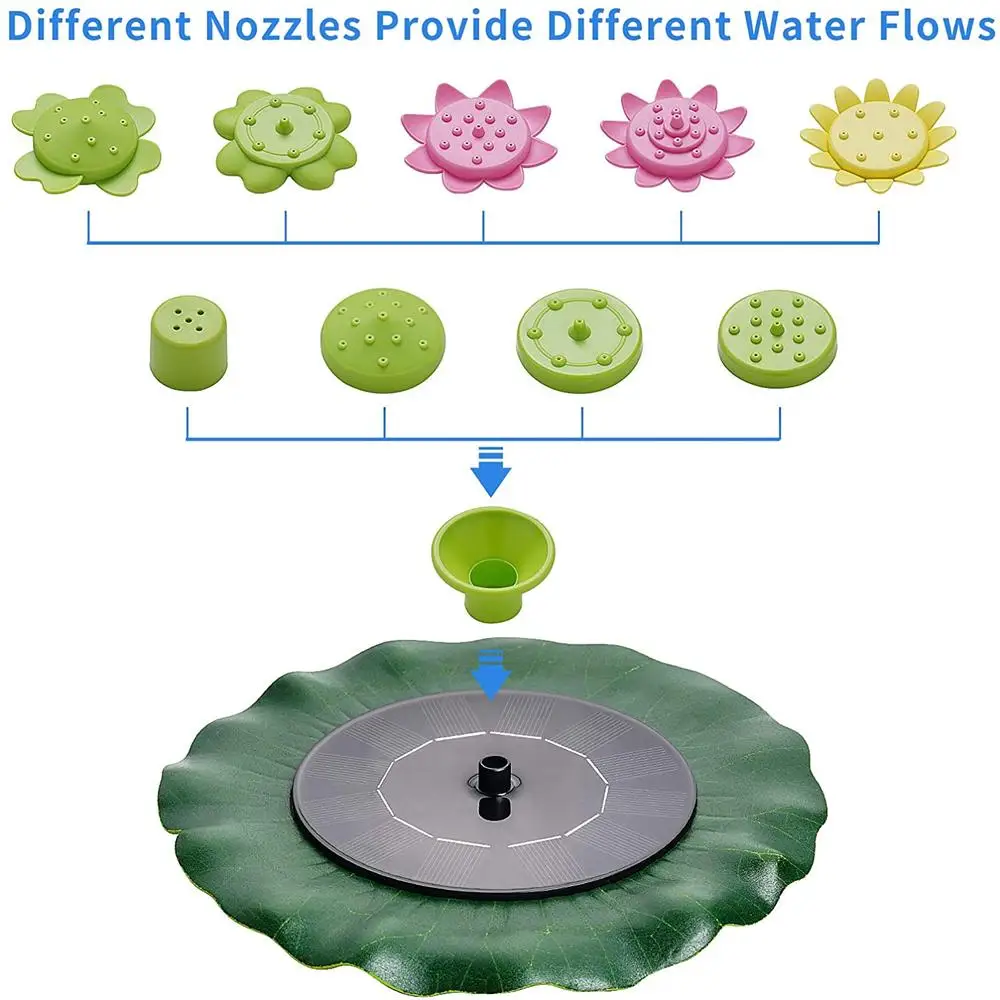 1W Napenergia -Szökőkút Szivattyú Lótusz Levél Burkolás Úszó Víz Szökőkút Fúvókák Madárfürdő -Tó Medence Hal Tál Akvárium Kert Dekoráció